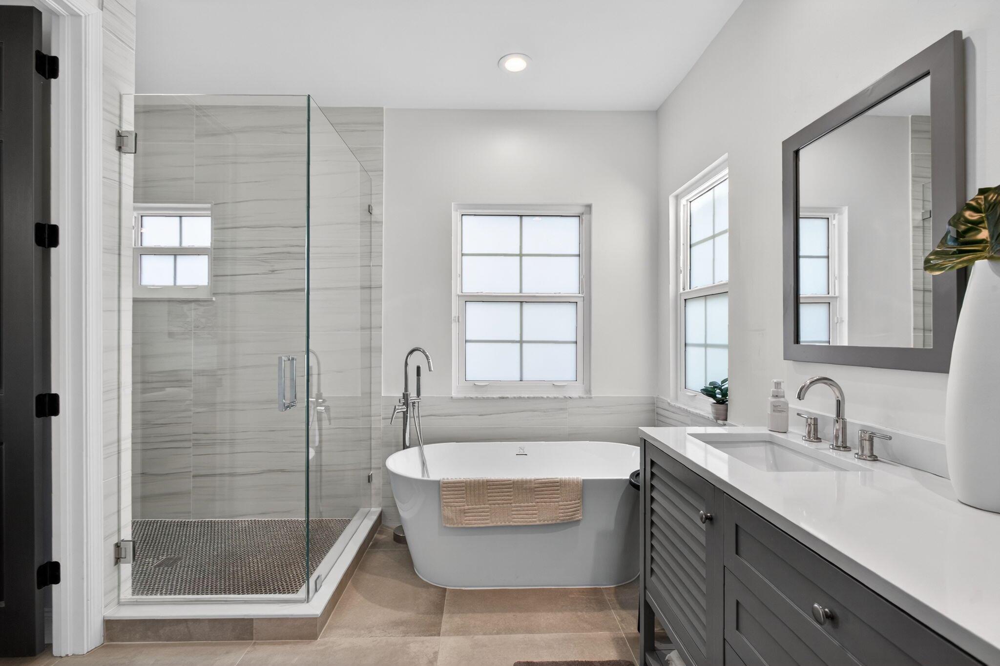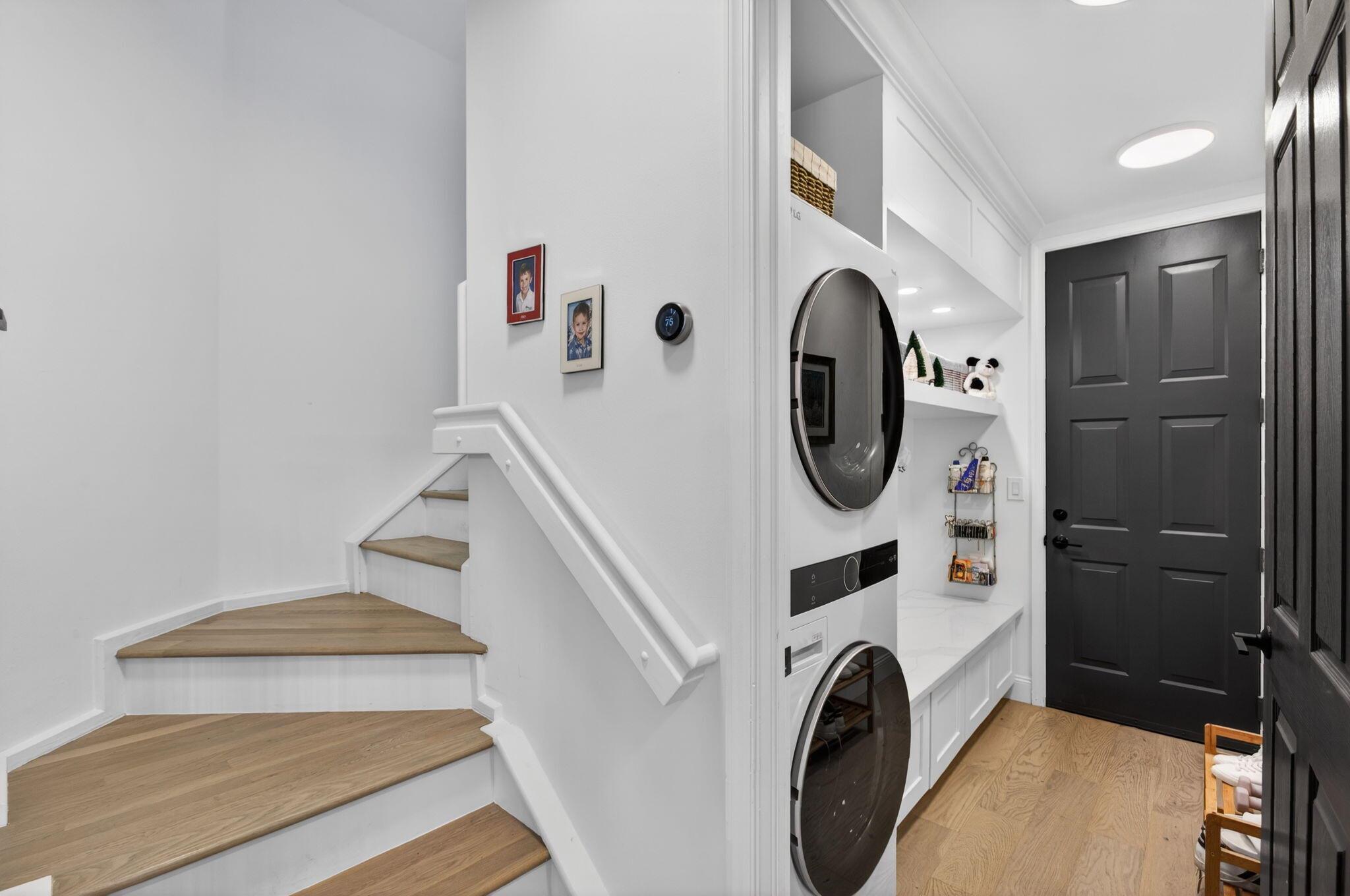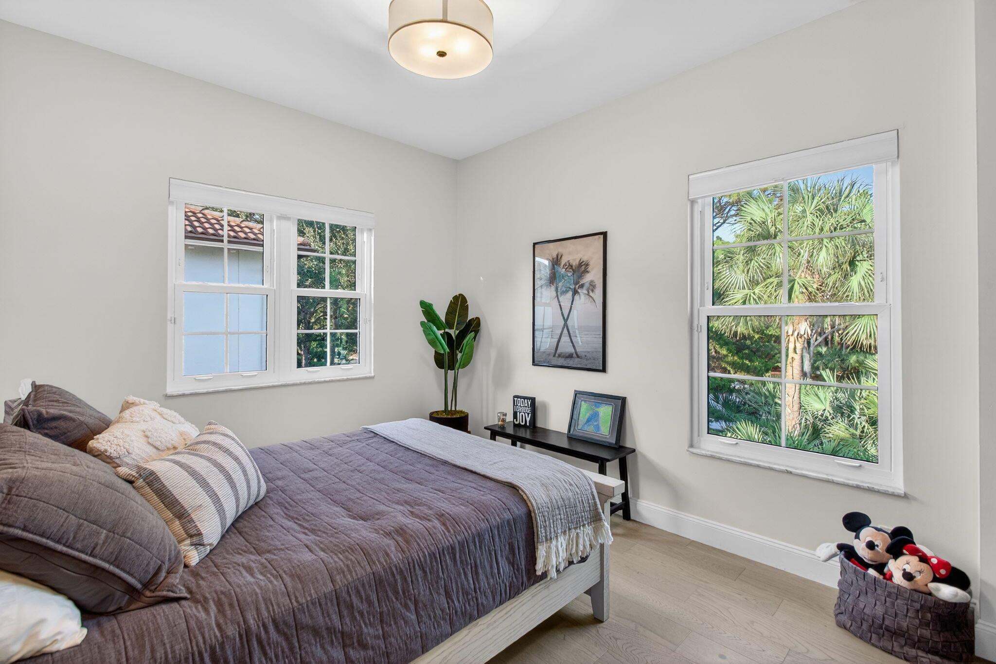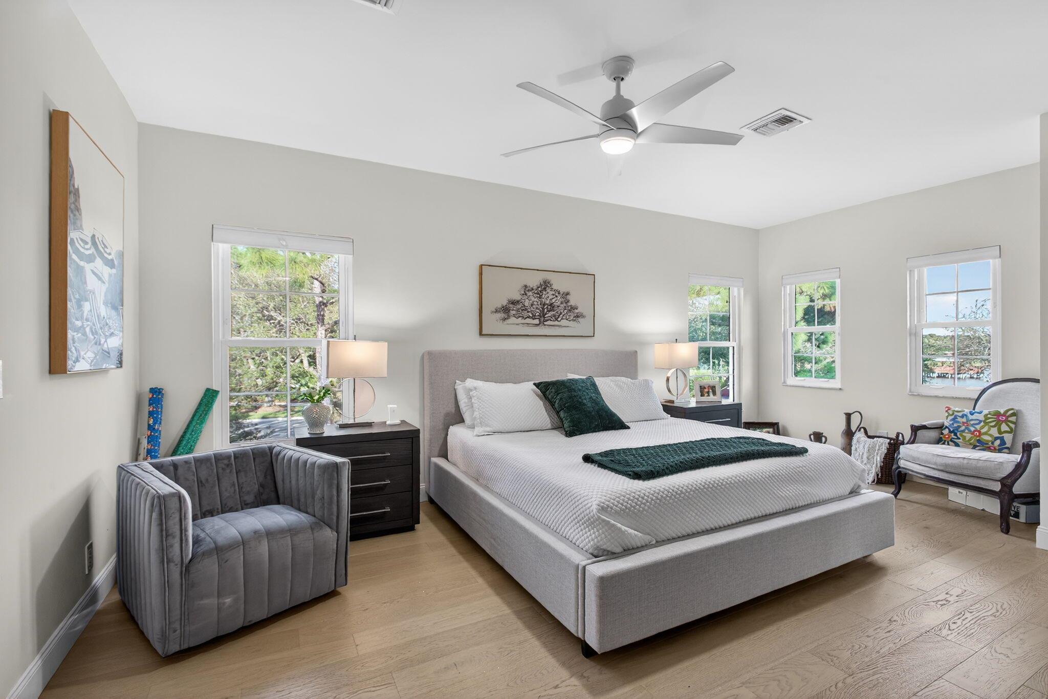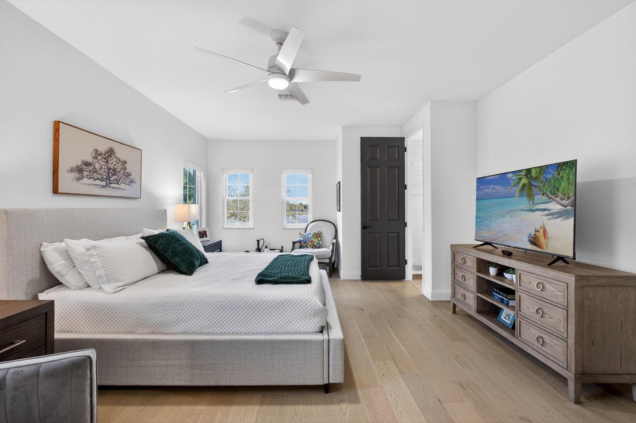 Exceptional 2-story residence nestled on private corner lot surrounded by lush tropical landscaping with wide lake views This meticulously kept home boasts over 2,000 SF under air with BRAND NEW ROOF, hurricane impact windows, 2 newer A/C units (2023), newer water heater (2023) and elegant white oak hardwood flooring throughout! Designed with the perfect combination of casual living and sophisticated craftsmanship, this renovated open floor plan offers stunning gourmet kitchen equipped with an abundance of custom cabinetry, under cabinet lighting, Quartz counter tops with separate island, decorative tile backsplash and stainless steel appliances. Expansive and beautifully renovated laundry room offers tons of cabinets and built-in oversized front load LG washer and dryer.