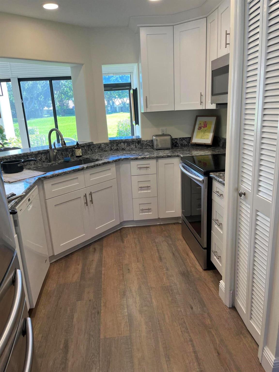 Welcome to Aberdeen, move right in! Newer kitchen with stainless appliances. The following new in 2024, all new flooring throughout. 5 1/4 baseboards, hurricane shutters, window treatments, entire condo painted, new bathroom vanities, No popcorn ceilings.Pool, tennis courts, exercise room. Make it home.pl