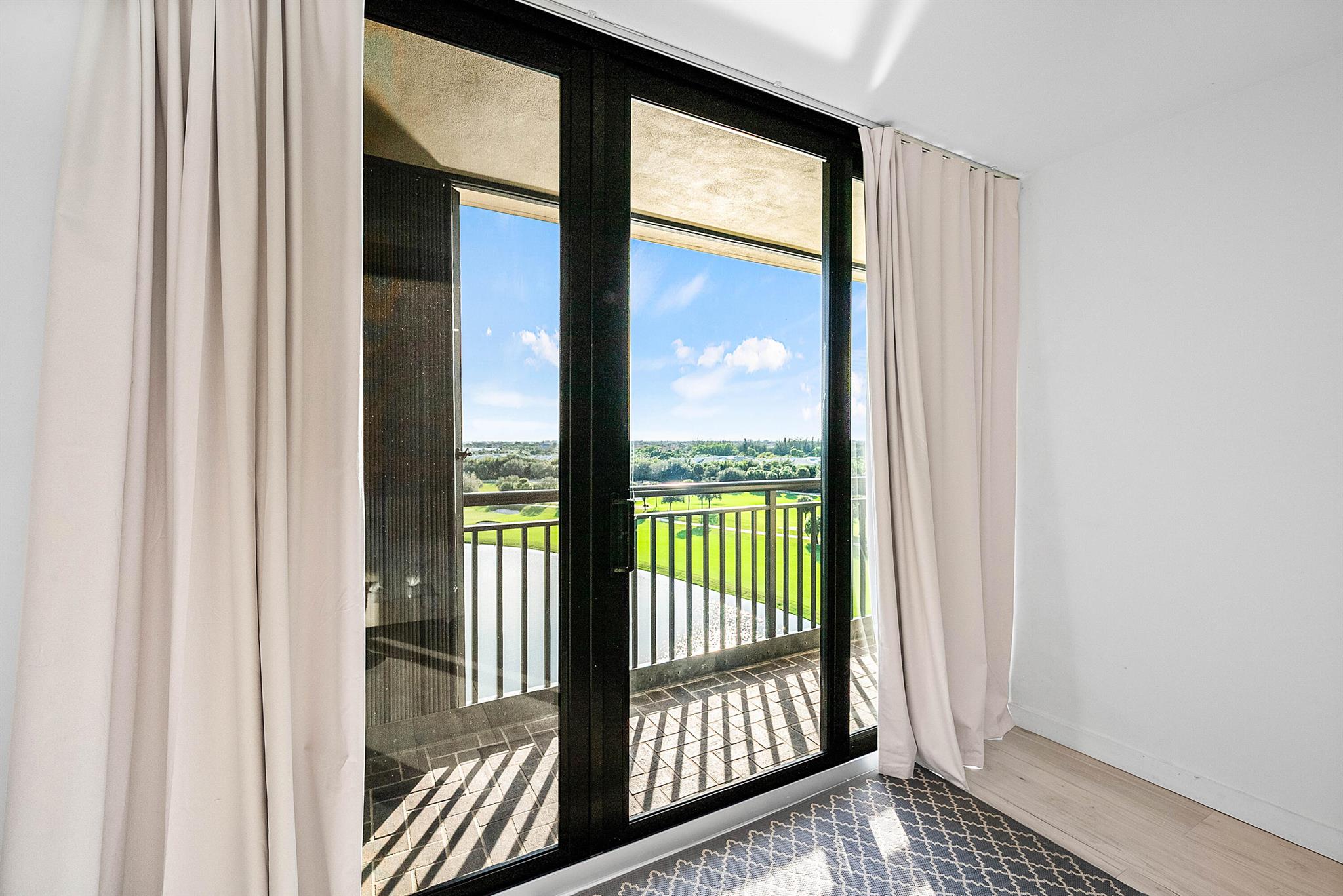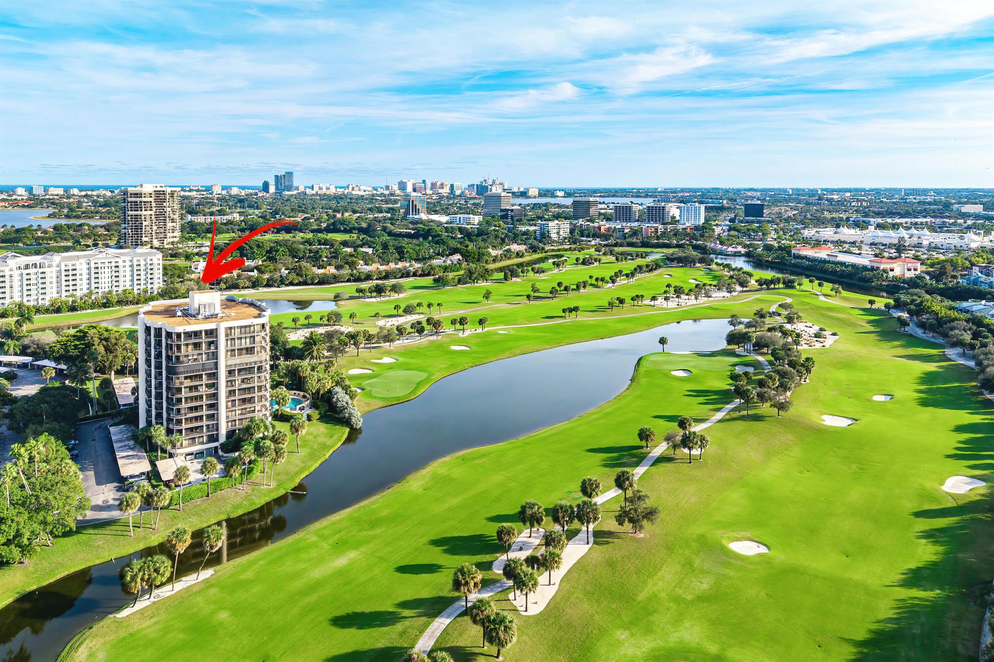 Spacious 3-bedroom, 2.5-bath residence in the gated Lands of the President community with impact glass and panoramic golf, lake, and city views overlooking the new Dutchman's Pipe Golf Club and the Belgrove, a Marriott Autograph Collection hotel. This light-filled 8th-floor unit offers an open living area, floor-to-ceiling sliders, and a private balcony. The split-bedroom layout includes a large primary suite with balcony access plus two additional bedrooms. Residents enjoy 24-hour manned security, a renovated lobby, community pool, and a prime location near downtown West Palm, The Square, Palm Beach Island, and PBI Airport.
