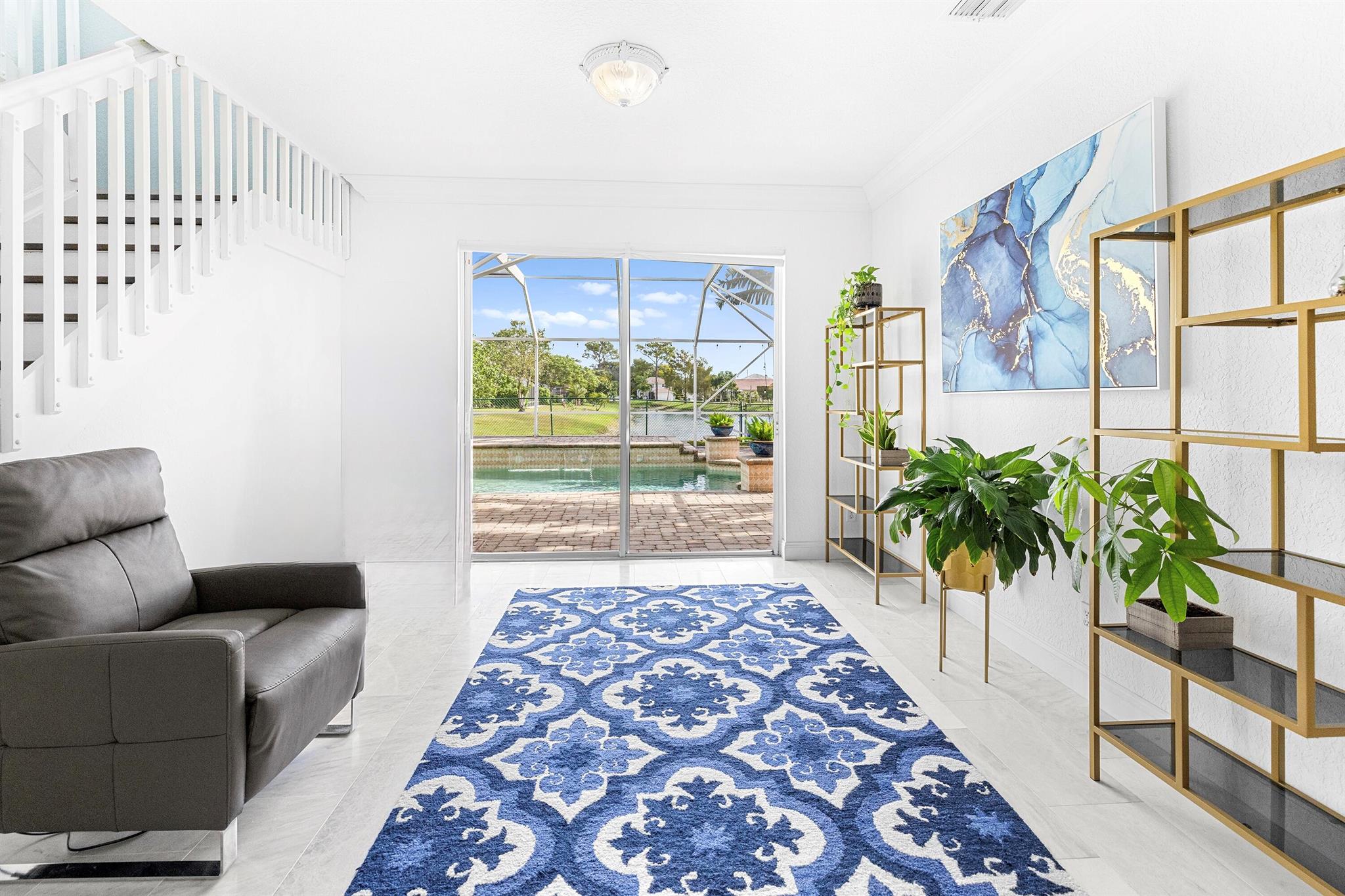 This stunning, updated 4 bedroom, 3 bathroom, POOL home sits on a generous LAKEFRONT lot, and is filled with phenomenal CUSTOM upgrades! It is a perfect home to host and entertain your family and friends. There is luxury imported marble on the first floor and hand-scraped wood flooring on the upper level. The kitchen is equipped with quartz countertops, newer stainless steel appliances (2024-2025), and plenty of light-wood cabinets crowned with elegant moldings. The luxurious, spacious and bright primary suite offers an oversized walk-in closet with convenient built-ins, and a renovated en-suite bathroom is complete with dual sinks, a beautifully crafted vanity, a soaking stand-alone tub and a separate shower. One of the bedrooms can serve as an office / library, and it features amazing