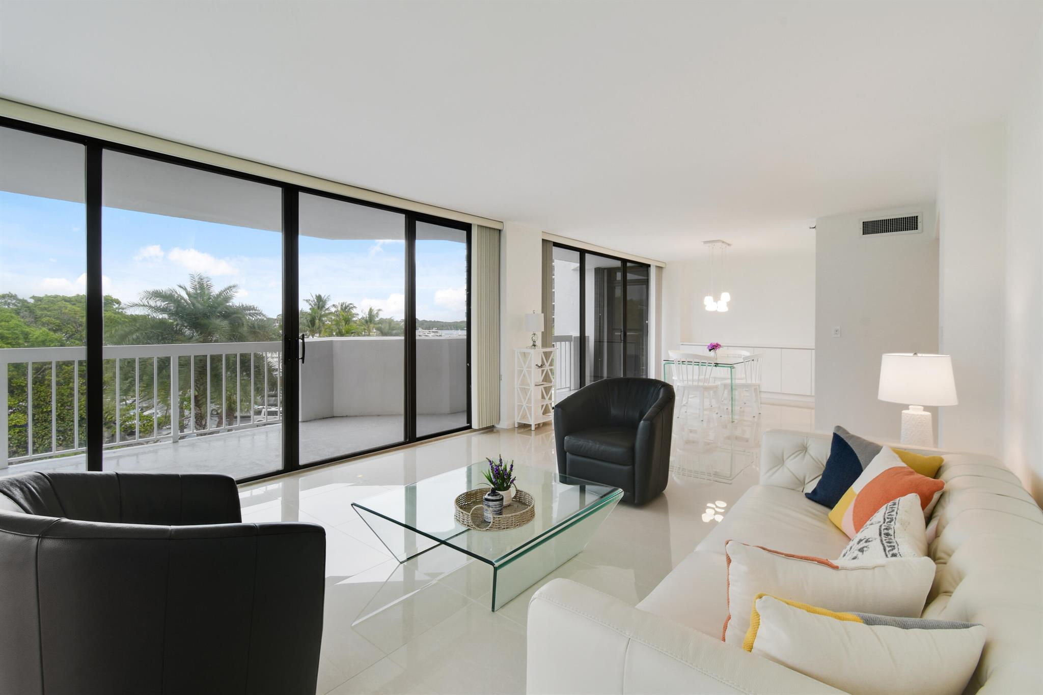 Don't miss this ready to move in 2 bedroom 2 bathroom apartment in Cove Tower West. Floor to ceiling windows with wrap around balconies. This lightly used unit features stainless steel appliances, porcelain tile throughout and washer and dryer in the unit. Old Port Cove sits on a 60 acre waterfront peninsula with over 8400 feet of shoreline. Guard gate and Intracoastal walking path are part of the development. Covered deeded parking spot and car wash. On-Site manager and daily housekeeping are part of the building perks. Ready to move in and enjoy your NPB lifestyle. Shopping, Dining and Golf right outside of the development. Convenient to the airport or beaches.