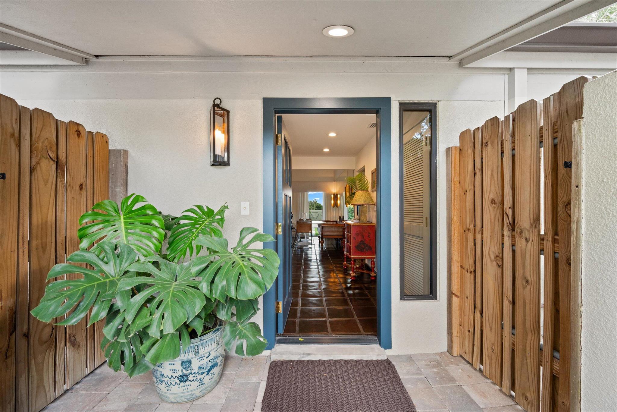Expertly renovated and offered fully furnished, this light-filled two-bedroom, two-bath bungalow is perfectly situated in a prime Palm Beach Polo location. Designed for both function and style, the residence features two spacious primary suites, each with a well-appointed ensuite bath. Thoughtful details and high-quality finishes are showcased throughout, creating a fresh and sophisticated aesthetic.The updated kitchen features custom cabinetry and elevated detailing, flowing seamlessly into the main living areas. The inviting family room is filled with natural light and offers open living and dining spaces ideal for everyday living or entertaining. Custom built-ins include an under-counter refrigerator and ice maker, thoughtfully designed to enhance effortless entertaining.