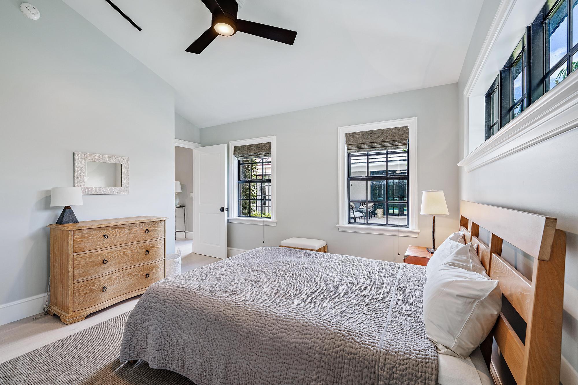 Beautifully appointed Bermuda style bungalow & guest house ideally located in-town on the east end of the ocean block. Fully furnished & turnkey. Renovation designed by Pat Segraves seamlessly blending timeless architecture with modern comforts. The main house offers a spacious primary suite with an ensuite bath as well as a second guest bedroom and bath. A detached one bedroom full guest house provides complete privacy for beloved family and friends. Enjoy al fresco dining on the covered lanai with automatic roll-down screens overlooking the pool. Additional features include hurricane impact windows and doors, along with state-of-the-art lighting and electronics throughout. This lily pad is just moments from beach access, renowned restaurants, and iconic Worth Avenue.