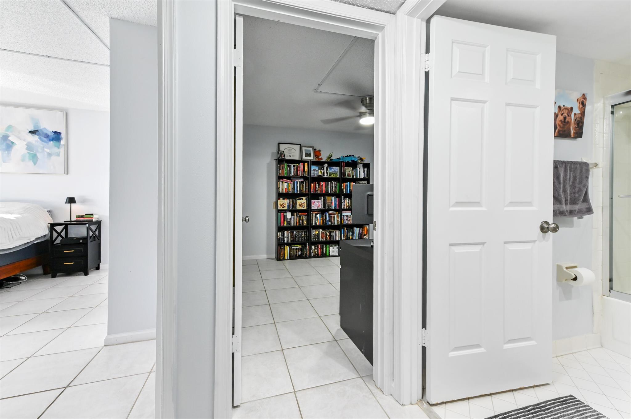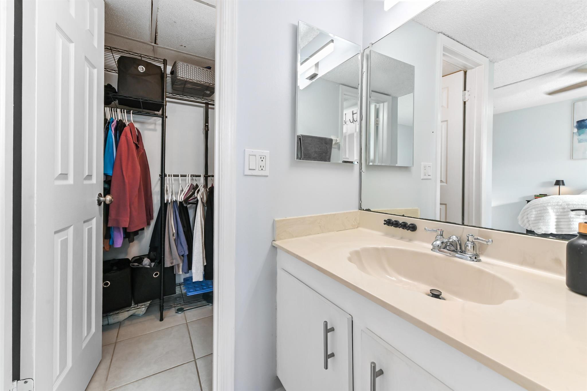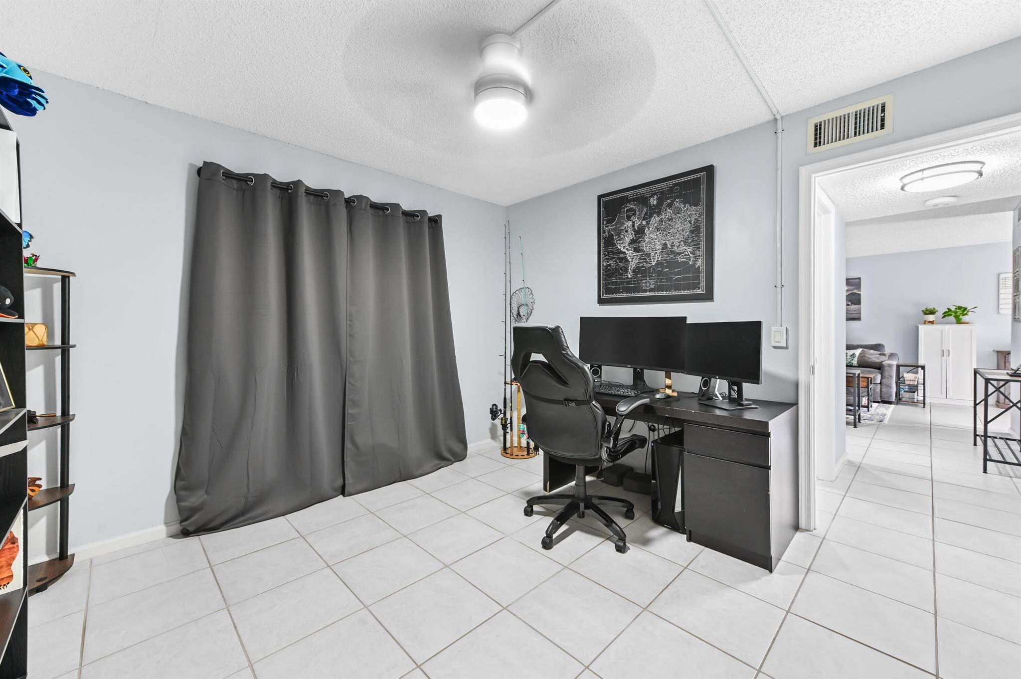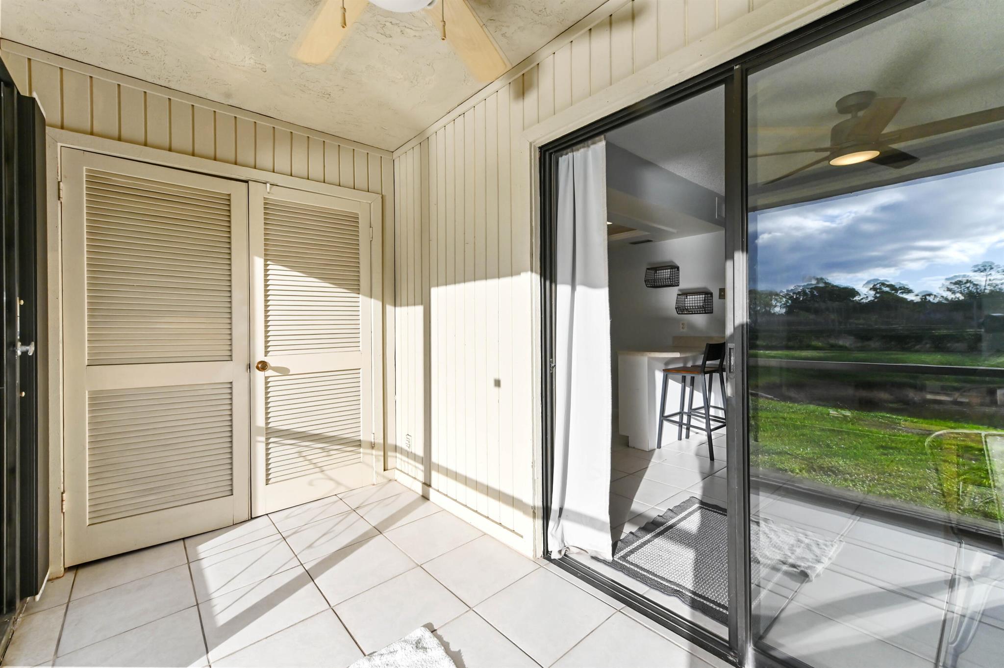 Discover the perfect blend of comfort and convenience in this immaculate, move-in-ready, first-floor condo, offering easy access without a single stair to climb. Step inside to find a bright and airy stack-bedroom layout that features pristine ceramic tile flooring throughout, ensuring a cool and low-maintenance lifestyle year-round. The heart of the home is the charming kitchen, distinguished by a unique tray ceiling that adds a touch of architectural elegance to your culinary space. Peace of mind is paramount here, with complete accordion shutters on all windows and doors for effortless storm protection.