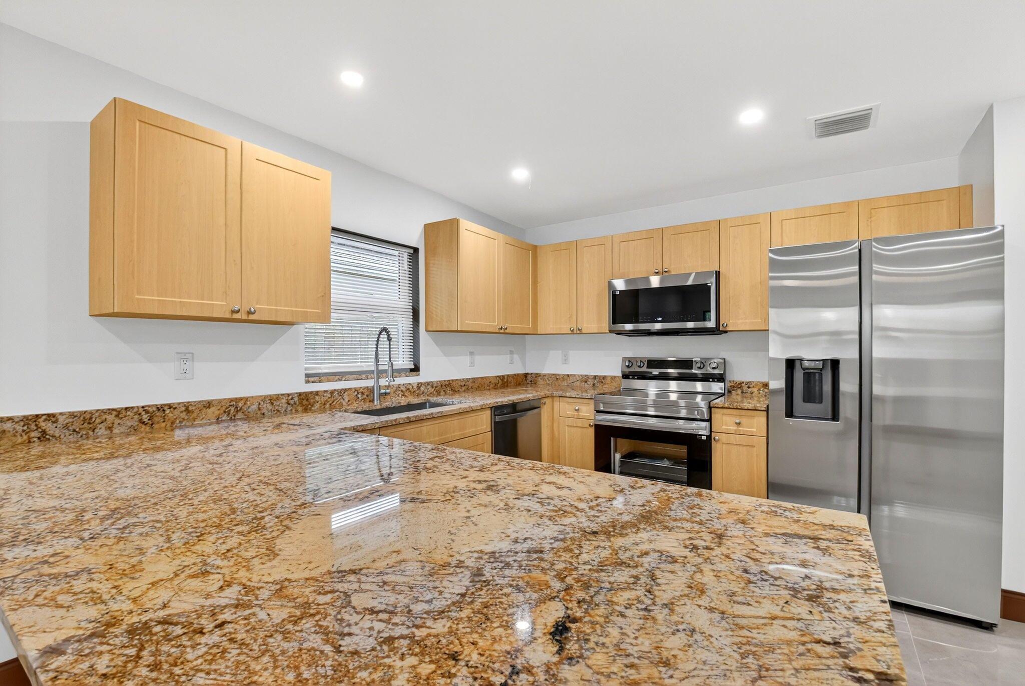 Welcome to 2932 Saginaw Avenue, West Palm Beach, FL 33409--a stunning new construction home completed in 2025 in the desirable Westgate neighborhood. This CBS-built residence features 3 spacious bedrooms and 2 full bathrooms, offering a perfect layout with large rooms and modern finishes throughout. Inside, enjoy elegant tile flooring, a beautifully designed kitchen with solid wood cabinets, granite countertops, and stainless steel appliances. Impact windows and doors provide added peace of mind and energy efficiency, while the fenced-in yard is ideal for pets and outdoor gatherings. With convenient access to downtown West Palm Beach, Palm Beach International Airport, I-95, and the Florida Turnpike, this home is perfectly located for both comfort and accessibility. Won't last long!