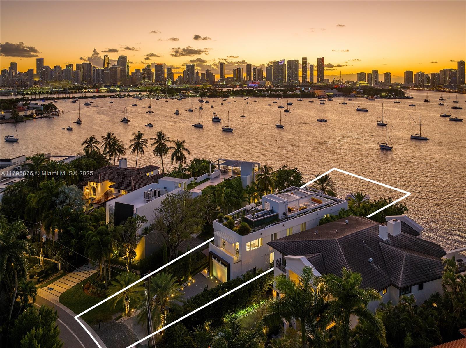 This spectacular contemporary tri-level waterfront home is located on the tip of guard-gated Hibiscus Island featuring a rooftop entertainment lounge & the best open bay & Miami skyline views on Miami Beach. The 5BR/6+1BA home boasts marble & hardwood floors, soaring ceilings, fine designer finishes, floor to-ceiling windows, sleek chef’s kitchen w/top-of-the line appliances, & expansive living/entertainment areas w/amazing water views. 2nd level principal suite w/private terrace facing the bay, & spa-inspired marble bathroom & large walk-in closet. 3rd level rooftop lounge made to relax & enjoy sunsets over the bay & Miami skyline. The outdoor spaces offer covered seating areas, summer kitchen, pool w/waterfall, cabana bath, large dock & Ocean access.