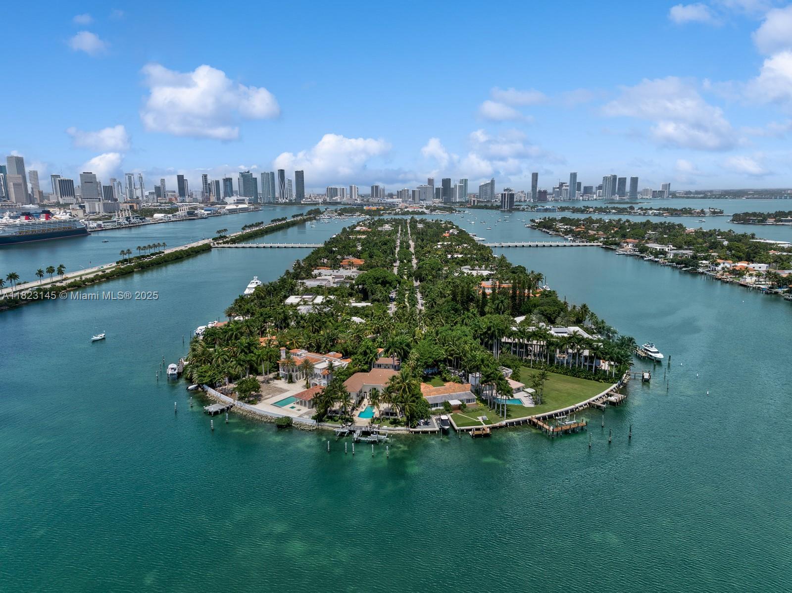 In a league of its own, this modern estate redefines luxury living on guard gated Palm Island. Nestled on an expansive 32k SFlot, enjoy 9 beds 8/1 baths perfectly set on 13,144 SF. The chef’s kitchen is an epicurean delight, featuring top-of-the-line appliances, a walk-in refrigerator, & stunning water views. The expansive primary suite offers an oversized marble bathroom, generous closets, & private balcony overlooking the bay. Entertaining is elevated to an art form with multiple outdoor spaces seamlessly woven into the estate’s design, showcasing breathtaking skyline views. Highlights include a wine cellar, movie theater, gym, dedicated staff quarters with dual rooms, a pet room, & an elevator. A private dock, 100 ft of water frontage, & direct ocean access complete this masterpiece.