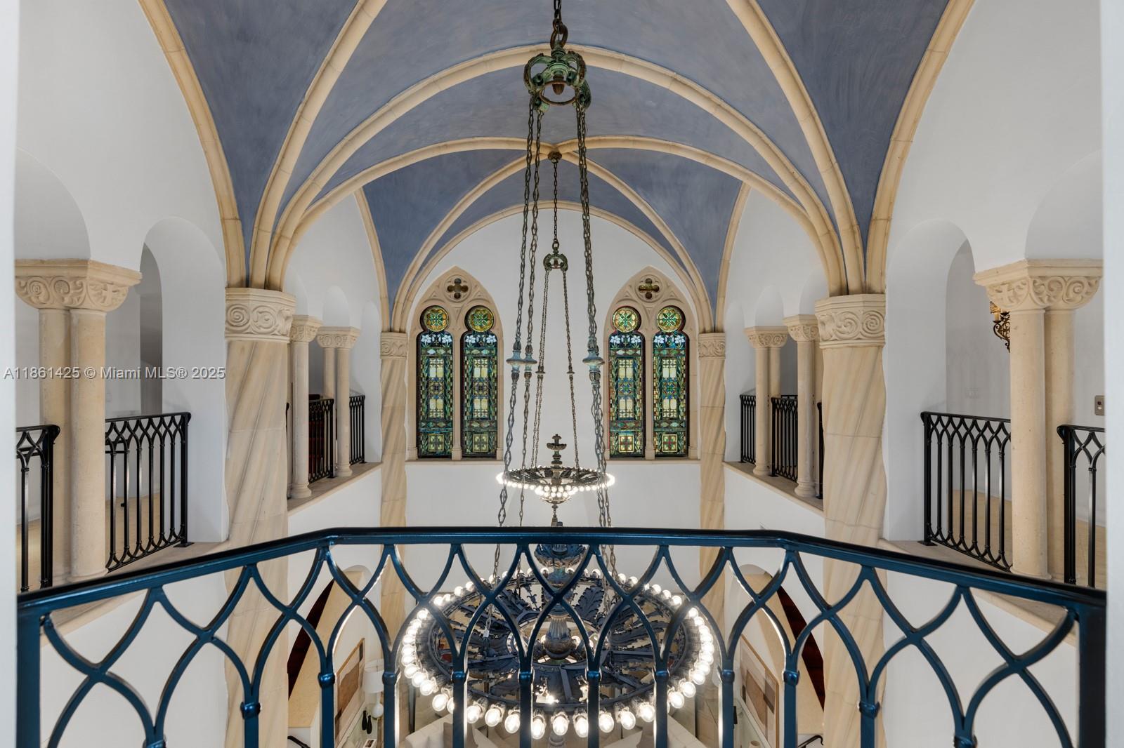 A fairytale castle in Coconut Grove, designed by Ralph Portuondo, where Gothic grandeur meets modern sophistication. The dramatic Great Hall boasts 30-ft vaulted ceilings, stone fireplaces & antique stained-glass, complemented by French cast bronze chandeliers and Jerusalem stone floors. Highlights include a La Cornue chef’s kitchen, elevator, keystone-edged infinity pool, cement dock, rooftop sundeck & terraces with water views. Landscaping by Fernando Wong, Murano chandeliers by B.F. Signoretti, and custom metalwork fencing by Belt Designs add bespoke elegance. Plus, independent living quarters with kitchen & a 3,000 sq/ft unfinished basement complete this one-of-a-kind estate.