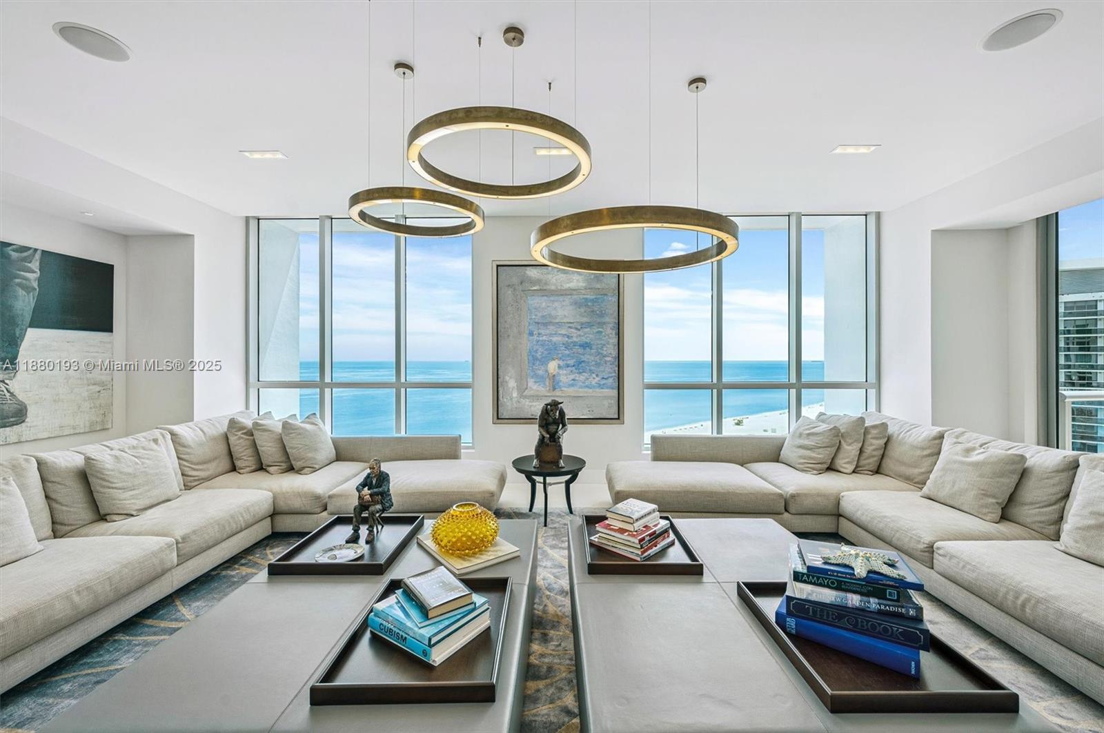 Another Collectible Property by the Jeff Miller Group! Located in the exclusive Bath Club - Miami Beach’s premier oceanfront enclave - Residence 1804/1805 has been seamlessly combined to offer 7,800 SF of thoughtfully curated living space. This 6-bed residence, each with ensuite baths, also features a private movie theater + home office, blending the privacy of a mansion in the sky with five-star resort amenities. Meticulously designed by Miriam Moore, the home boasts a Italian kitchen by GD Cucine, Gaggenau appliances, Onyx countertops, Crema Bianco limestone flooring. Spa-like bathrooms impress with hand-selected marbles, natural stones, oak cabinetry, and Dornbracht fixtures. Additional highlights include bespoke Italian doors, designer wall coverings, and custom built-ins throughout.