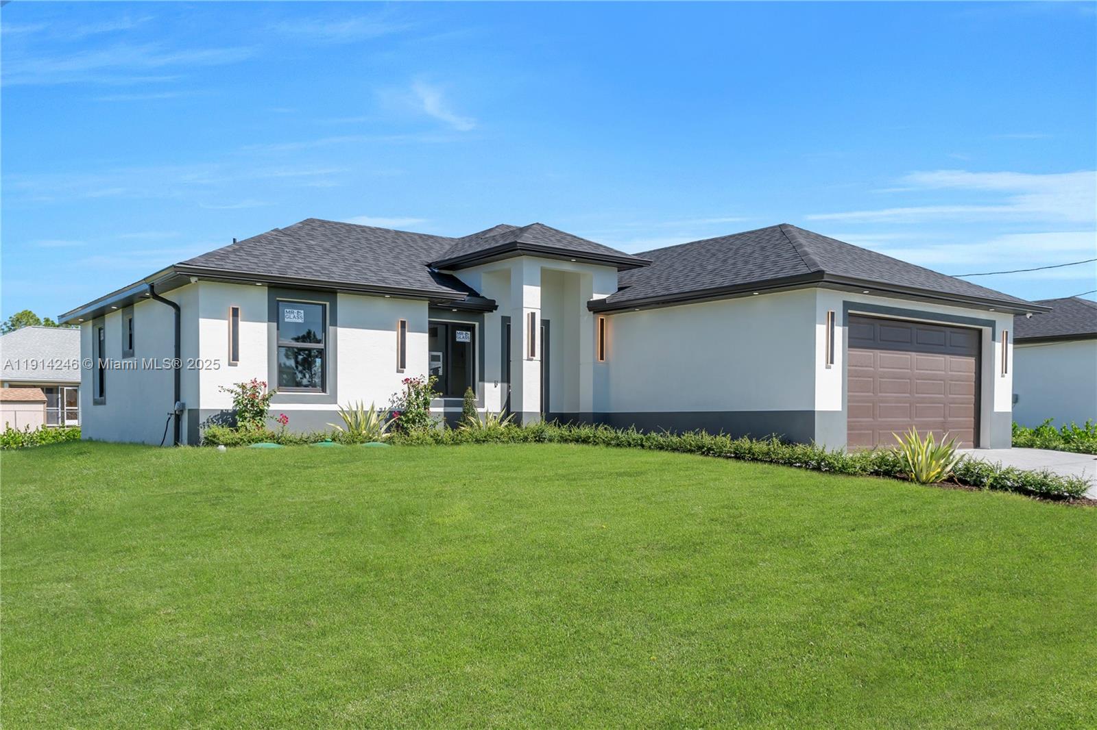 READY TO MOVE IN! This stunning new construction home combines modern design, comfort, and security. It features 3 bedrooms, 2 bathrooms, and impact-resistant windows for safety and energy efficiency. The modern kitchen offers quartz countertops, stainless steel appliances, and an open-concept layout perfect for everyday living or entertaining. Upgrades include a built-in audio system, a full security camera system, an irrigation system, and washer and dryer included. Outside, enjoy a beautifully landscaped garden with a living fence made of Clusia plants, providing both privacy and natural beauty. The exterior is fully illuminated, creating a warm and elegant ambiance. This move-in-ready home is the perfect blend of style, functionality, and peace of mind—a must-see opportunity!