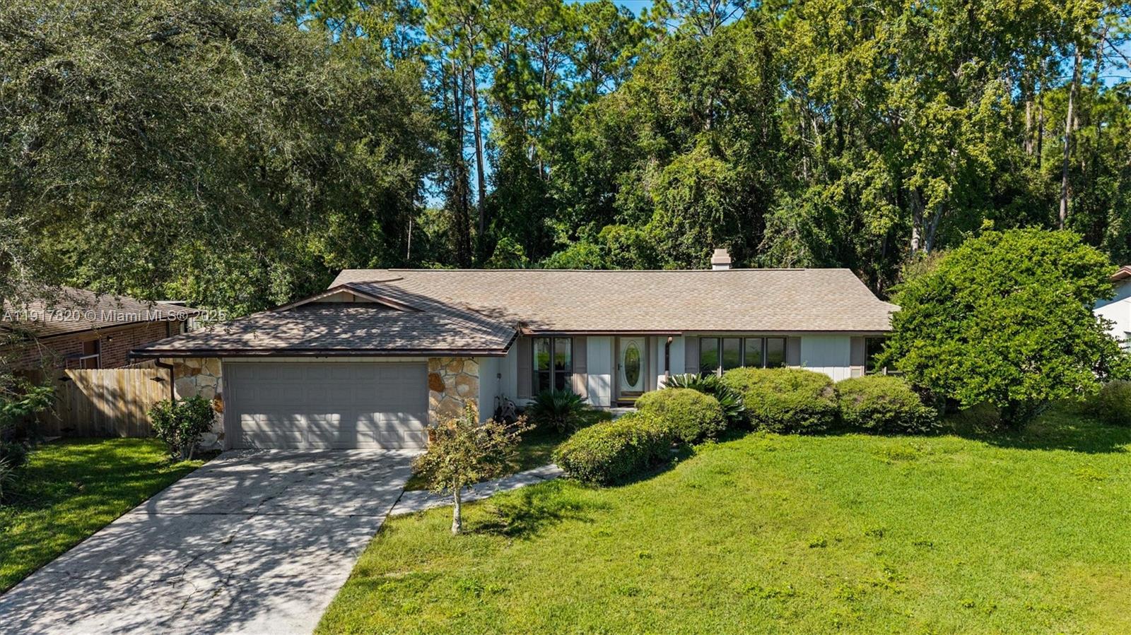 Discover this charming 3-bedroom, 2-bath home located in the desirable Montclair community of Orange Park. Situated on a spacious lot with a serene wooded backdrop, this single-story residence offers privacy, comfort, and generous living spaces. The inviting family room features vaulted ceilings, warm wood paneling, and a beautiful brick fireplace, creating a cozy focal point for gatherings. A bright screened porch and extended patio overlook the large fenced backyard—perfect for outdoor entertaining, pets, or future garden projects. The kitchen offers ample cabinetry, stainless steel appliances, and direct access to a breakfast nook with backyard views. The split floor plan provides excellent separation, with the primary suite offering a walk-in closet and ensuite bath. Two additional bedrooms share a full bath and feature abundant natural light. The home includes a formal dining room, a spacious front living room, and a 2-car garage. Located minutes from shopping, restaurants, parks, top Clay County schools, and the St. Johns River, this home blends peaceful suburban living with everyday convenience. With solid bones and endless potential for personalization, this property is the perfect opportunity for a buyer looking to add their touch and create a beautiful forever home.