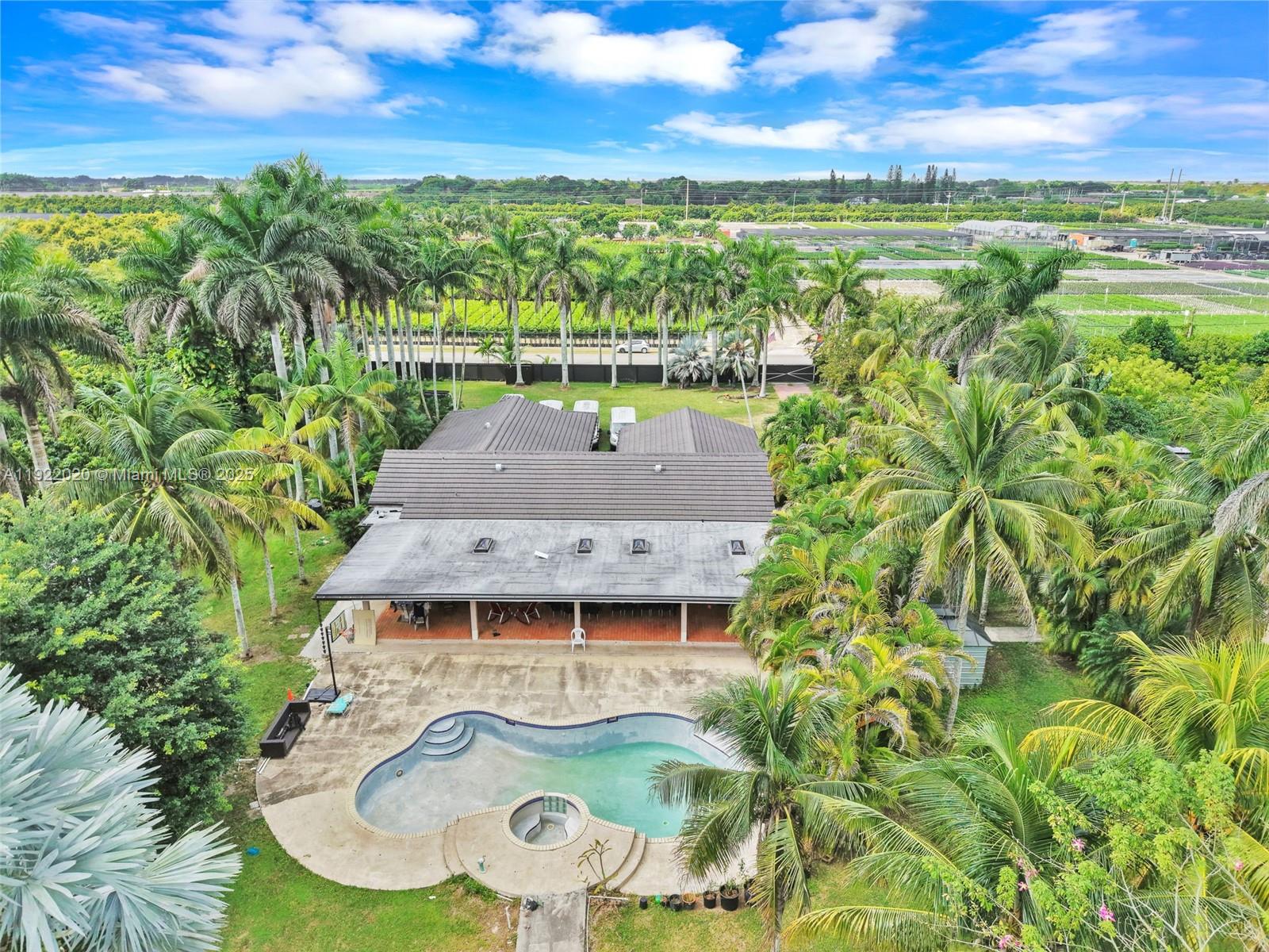 Beautiful 5-bedroom, 4-bath home in Homestead on a 2-acre lot. Features a new 2023 roof with permits, big terrace, pool, and plenty of mature trees including fruit trees. Spacious property with endless potential—come make it your own!