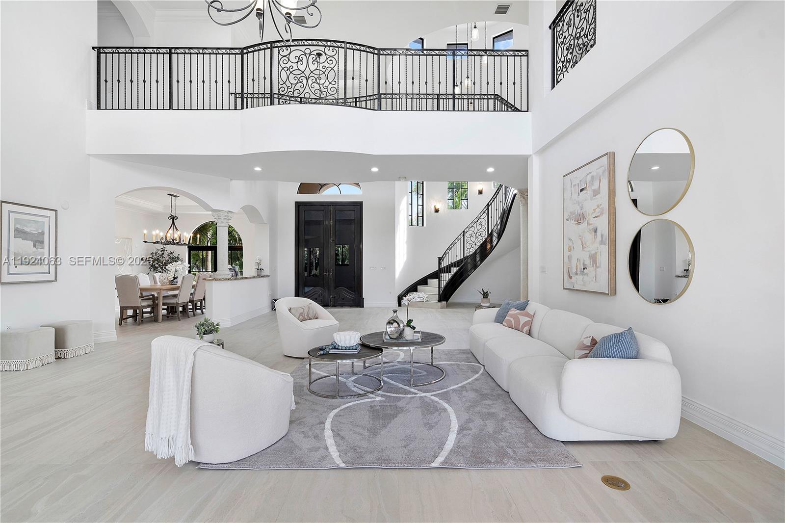 Discover your dream home in this stunning 9,436 SQFT, 7402 SQFt under AC, Mediterranean masterpiece, blending elegance and serenity on 1.42 acres. This bright, large yet warm retreat was completely remodeled in 2025, boasting a smart floor plan, sprawling high ceilings, perfect for entertaining and relaxing, 6 elegant suites + extra 1/2 bathroom, open-concept Chef's kitchen with new Thermador appliances, formal dining, expansive home theater with full bar, an additional entertaining area with bar upstairs. office/convertible room, and a cabana suite on the first floor with independent entrance from the pool and from 2nd garage and/or side driveway (good as 2nd primary bedroom, in law's quarter, college students or guests). Resort-style backyard oasis with Pool/Spa with new systems, BBQ ready Gazebo, lush landscape and mango tree, new sprinklers. Elevator-ready, 2 laundry rooms, 2-car garages (for 4 cars) + ample parking. Manmade pond with fountain, and an excellent drainage system. Prime location near American Heritage School, Panthers Stadium and Ft. Lauderdale Airport. Too many upgrades and features to mention! Make this rare gem yours! Call us to schedule a private tour.