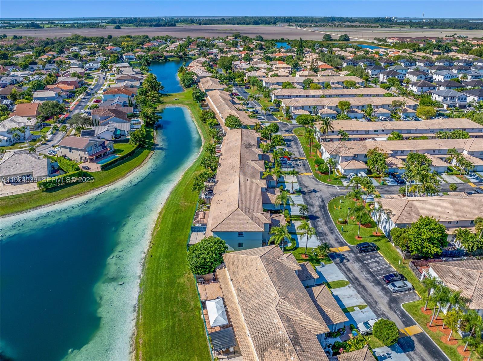 Contact Robin Perez for all inquiries 786 261 5393. Beautifully maintained 3-bedroom, 2.5-bath corner townhouse in the desirable Villas at Lago Mar! This rare corner unit offers extra privacy with only one neighbor, a dedicated home office, and stunning lake views with direct access—perfect for peaceful mornings or evenings. The bright layout features ceramic tile downstairs and wood laminate upstairs—no carpet anywhere. The remodeled kitchen and downstairs bathroom (updated 3 years ago) include modern finishes and stainless steel appliances. Full impact windows throughout provide added safety, energy efficiency, and lower insurance costs. The spacious primary suite features a renovated bathroom with dual vanities, a large shower, and ample closet space. Two additional bedrooms and a well-kept secondary bath complete the upstairs. Enjoy outdoor living on your private fenced patio overlooking the lake. The community is quiet, well-kept, and offers a sparkling pool. Conveniently located near major expressways, shopping centers, restaurants, hospitals, and top-rated schools. This move-in-ready corner home offers the perfect blend of privacy, comfort, and lifestyle. FHA and conventional offers welcome.