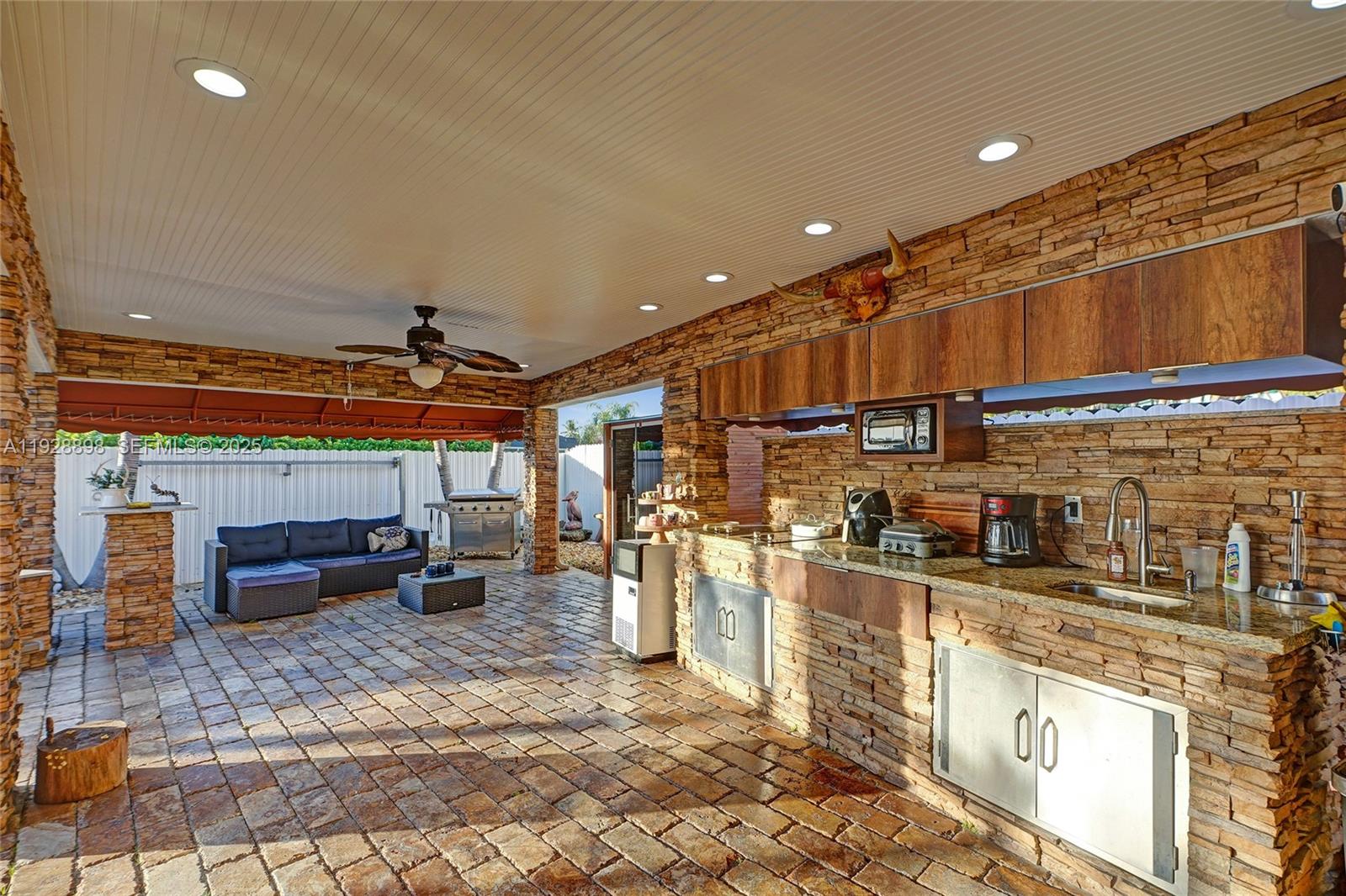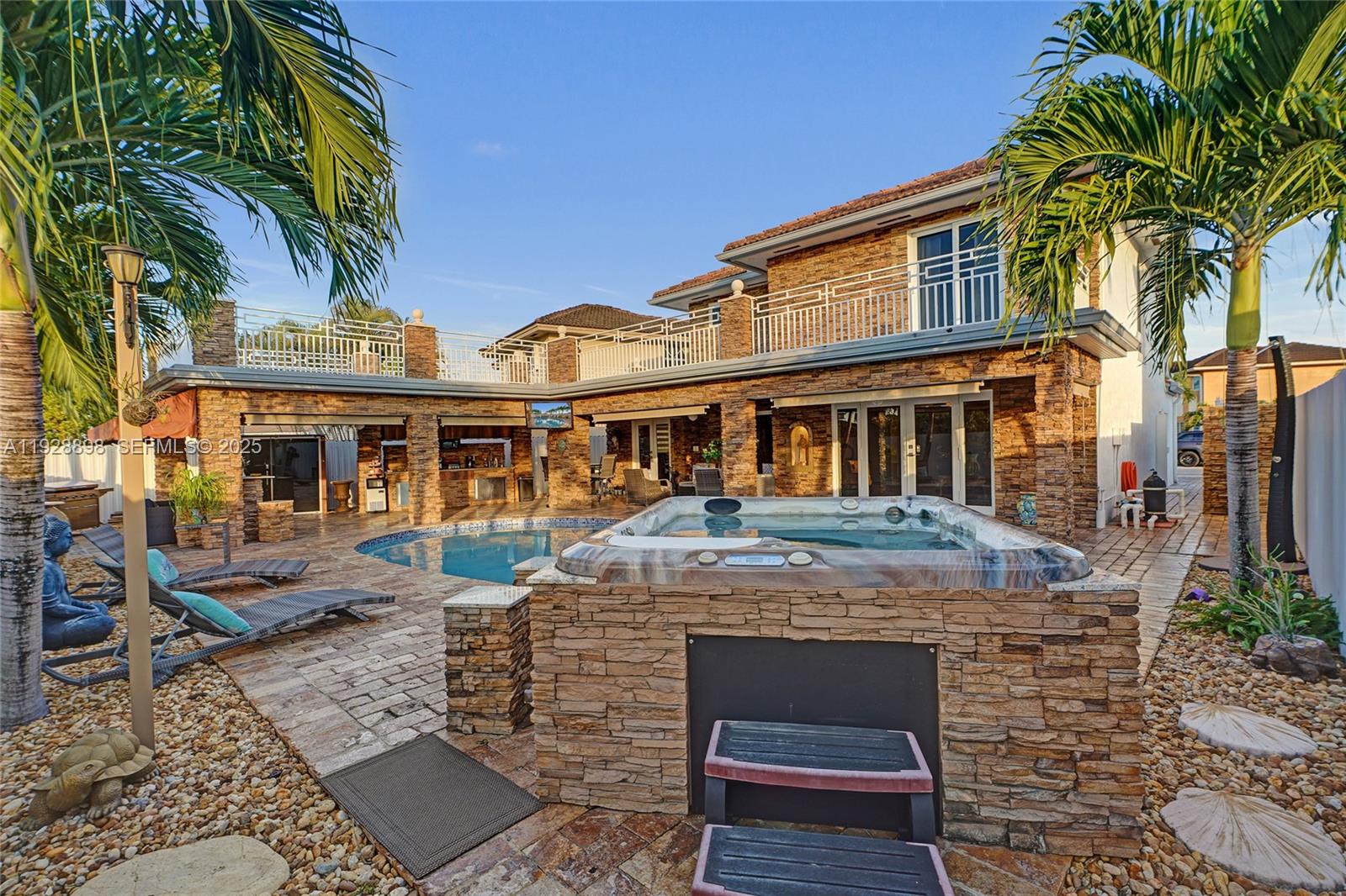 This beautifully upgraded Miami home features a custom extended second-floor balcony, elegant glass doors, and an updated kitchen. The converted single-car garage adds valuable living space. Enjoy a private freshwater pool with Jacuzzi, built-in sauna, a fully equipped outdoor kitchen, and it includes a commercial-grade generator, keeping your power on when every other house goes dark. Packed with custom touches throughout, this property offers comfort, style, and resort-like living for its next owners.