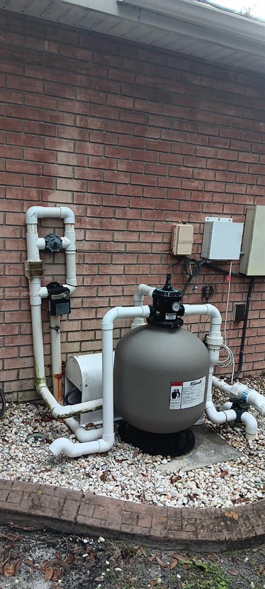 Custom built three-bedroom two-bathroom pool home with no HOA. Set back on a spacious lot with no rear neighbors and wooded views, this well-maintained home offers a formal living area, open family room, and a functional kitchen with induction cooktop, breakfast bar, and eat in space. The private primary suite features his and hers walk in closets and a bath with dual sinks, jetted tub, separate shower, and direct access to the pool. Secondary bedrooms offer new carpet and solar screens and share a full bathroom with skylight. The screened pool area includes an auto cleaner, child safety fence, solar blanket, pool pump motor replaced in 2021, and a new pool filter system in 2023. Recent updates include a new roof in 2023, A C replaced in 2023, whole house water filtration system installed in 2022, foam insulation, R30 attic insulation, solar panels with buyer to assume $131 monthly payment, an 8x10 storage shed, and a two-car garage with power roll up screen. A one-year home warranty is included.