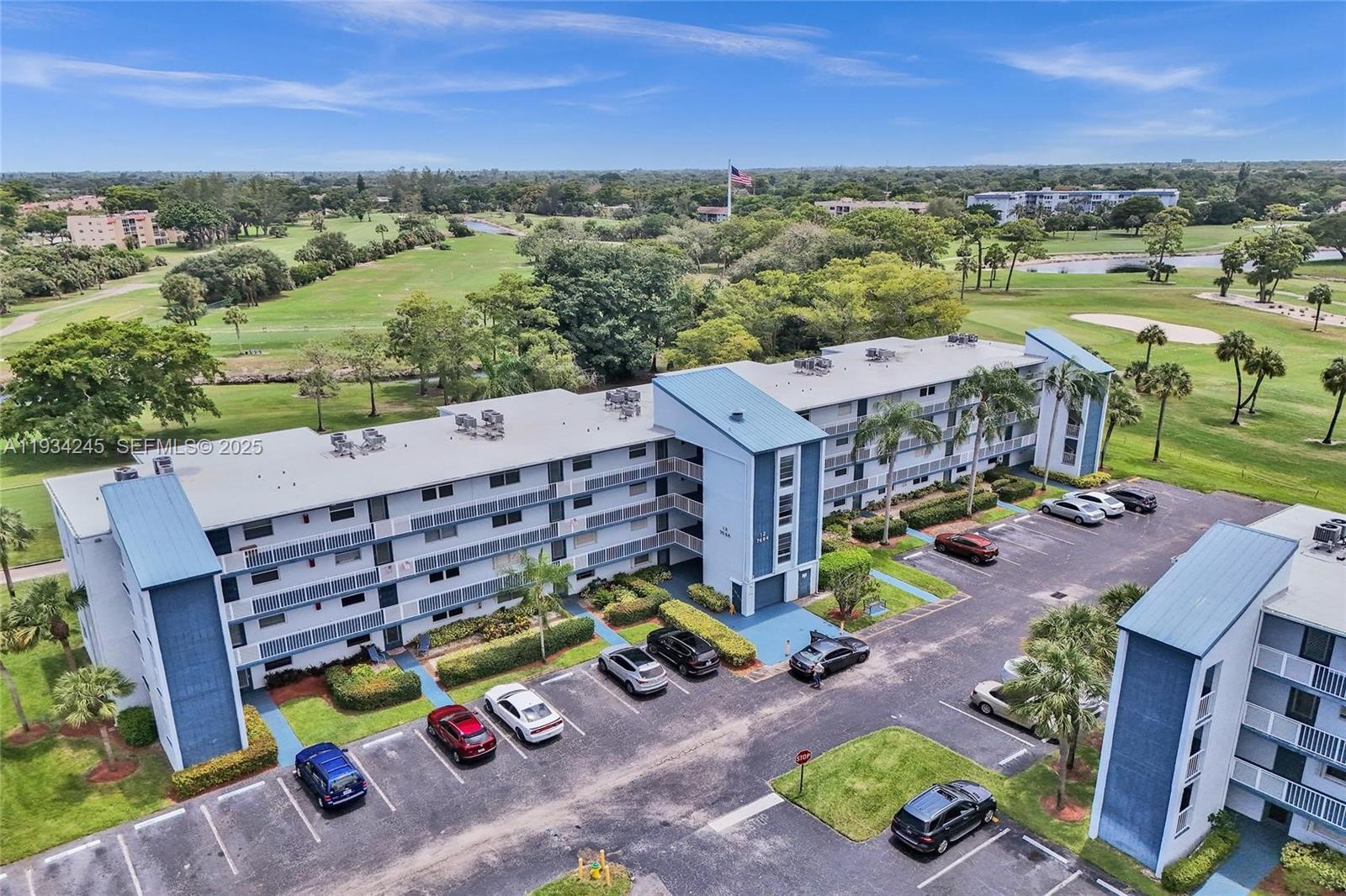 PRICED TO SELL!! Well-maintained, spacious and bright 2-bedroom, 2-bath condo + den/office for sale in Palm Springs 2! Over 1,120 sqft featuring an enclosed balcony with beautiful golf course & lake views, large rooms with walk-in closet, tile/wood flooring, kitchen appliances under 60-month warranty, and fully impact windows. Located on the 2nd floor near the elevator with excellent natural light. Enjoy private pools, clubhouse with indoor heated pool, movie theater, restaurant, pool tables, dance & game rooms in this 55+ community. NEW roof & elevator, fully funded association with completed 40-year milestone, reserve study & SIRS. All assessments paid. Must own 2 years before leasing. HOA $658.50. Seller will credit buyer to help with closing costs for the right offer!