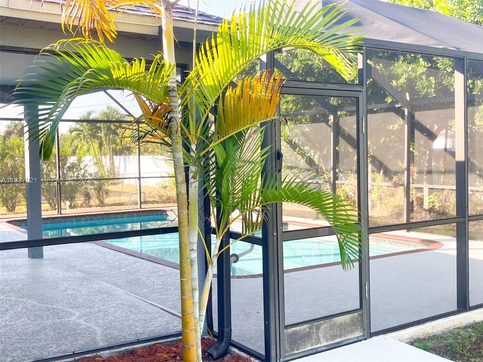 Beautiful 4Bd/2Ba + Den POOL HOME! On an OVERSIZE LOT!!! Welcome to your dream home in Cape Coral! This stunning home has been fully updated and features elegant 12 x 24 Porcelain Tiles throughout. The gorgeous kitchen offers Granite Countertops, a stylish tiled backsplash, new modern cabinetry, and stainless steel appliances, making it a chef's paradise. The den offers an ideal workspace for those who work from home or need a quiet area to study. Spacious master bedroom with walk-in closet. Amazing master bathroom with double sinks and granite countertops, for added convenience and luxury. Large jacuzzi tub and tiled shower. Spacious outdoor screened in lanai with large inground POOL. Enjoy Florida living in your very own perfect oasis for relaxation and entertainment. Situated on an oversized lot offering extra privacy and plenty of outdoor space for gardening, playing, or hosting gatherings. Conveniently located close to shopping, dining, and more! Don't miss out on the opportunity to make this your forever home and enjoy the ultimate in outdoor entertaining and relaxation.