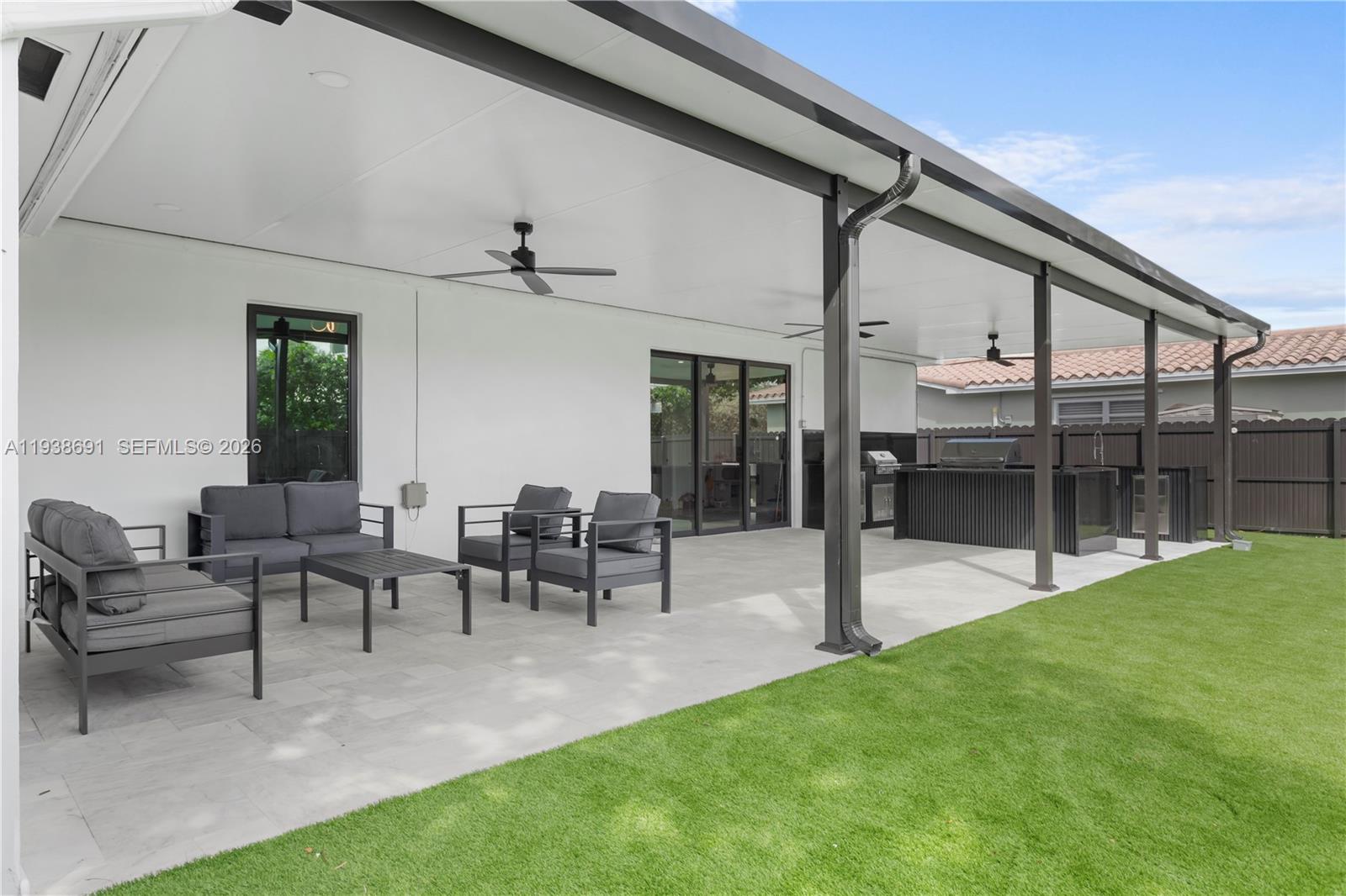 Your opportunity to own in one of South Florida’s most desirable neighborhoods — Hollywood Hills. This spacious 4-bedroom, 3-bath home offers nearly 2,300 sq. ft. of living space on an oversized lot. Brand new impact windows, an impact-rated garage door, kitchen appliances, metal roof, upgraded doors, new fencing, and a stylish pergola ensuring both peace of mind and energy efficiency. The seamless floor plan flows into spacious living and dining areas, perfect for entertaining or family gatherings. Step outside to your private backyard oasis complete with lush new turf, custom pavers, and a fully equipped outdoor kitchen featuring top-of-the-line grills and appliances. Just minutes from Downtown Hollywood, beaches, parks, major highways, and A-rated schools. *Can also be sold furnished.*pool in picture is virtual/rendering*