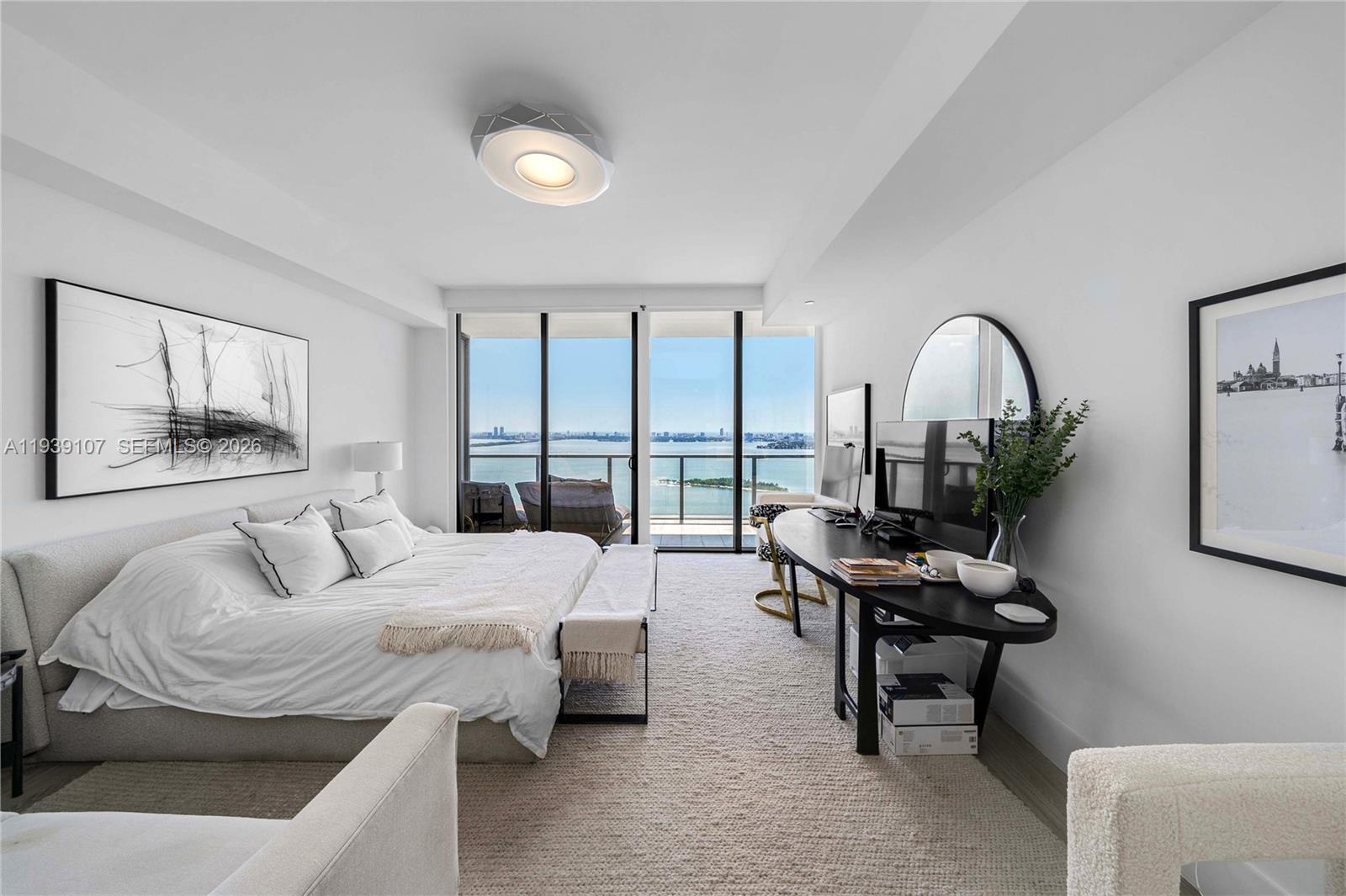 Edgewater’s most exclusive boutique development. 96 Residences with half and full floor flow-through units only! Presenting the premier SE corner floor plan with direct open bayfront views and incredible natural sunlight. 4 Bedrooms + Den/Office with endless water views facing Miami Beach & Downtown and city views of Edgewater and Wynwood. 10 ft. floor to ceiling glass windows, Wolf gas range and Subzero appliances, ceramic-wood flooring, & private elevator foyer. Lobby, 30th flr. owner’s Sky Lounge and residential common areas designed by renowned designer Jean-Louis Denoit. Other amenities include fitness center, spa, two pools, & five-star concierge services.