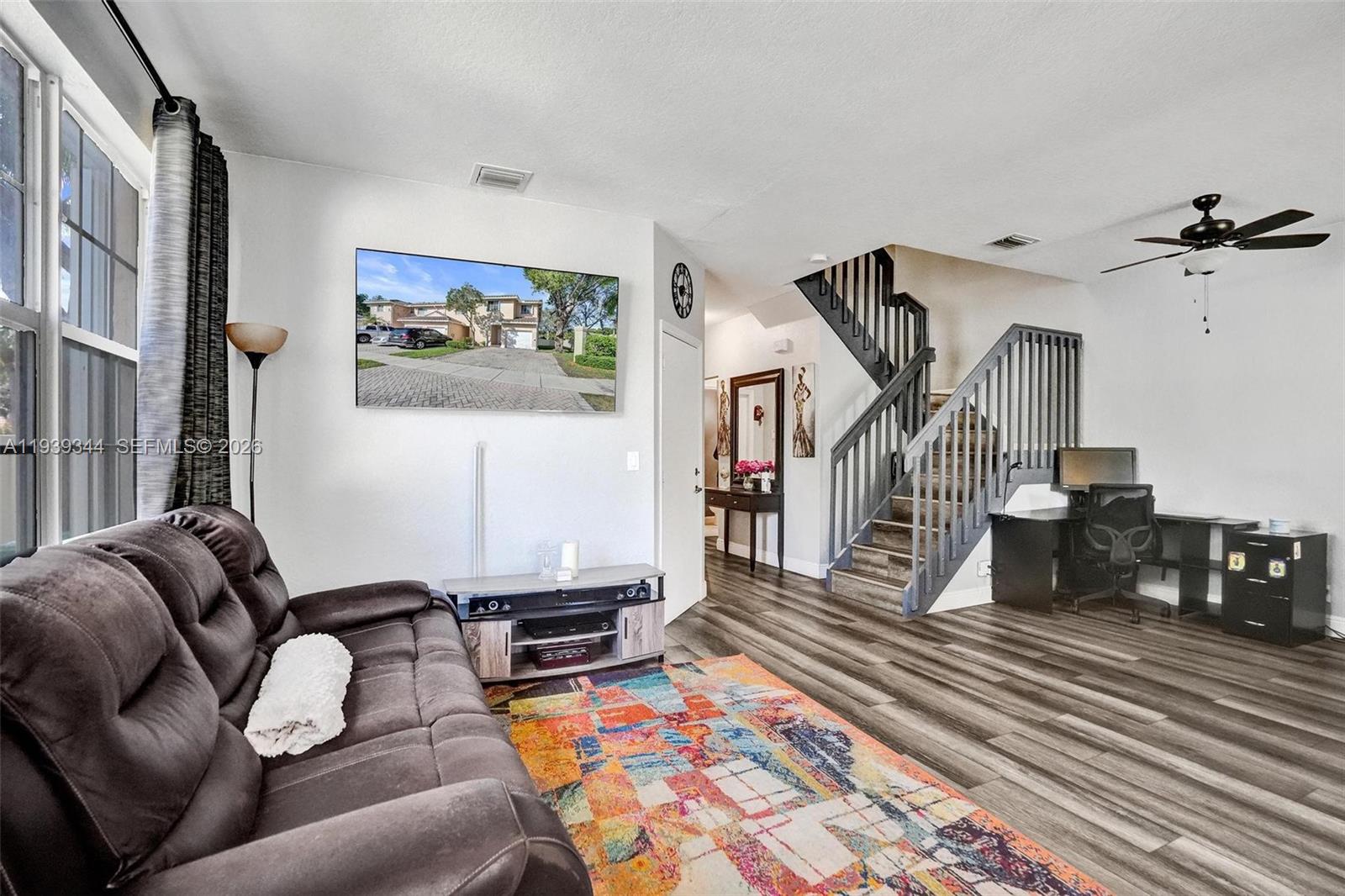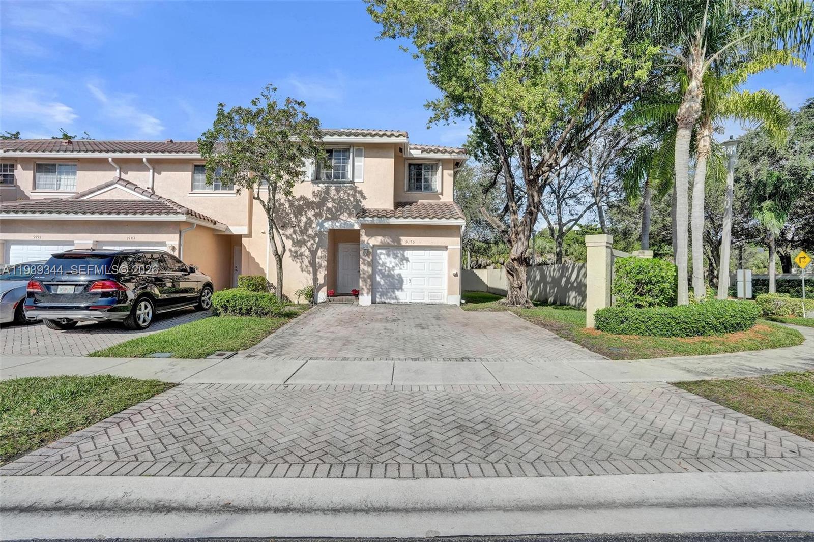 Gorgeous and bright corner-lot townhouse offering 4 bedrooms, 2.5 bathrooms, a family room, and a 1-car garage with driveway parking for up to four additional vehicles. Recently updated with a new roof (2025) and new HVAC system (2025), renovated upstairs bathrooms, and tile flooring throughout the main level. The spacious primary suite features vaulted ceilings, a walk-in closet. Enjoy a large private side yard enclosed by a 6-foot wall—perfect for relaxing or entertaining. Located in a quiet, gated community with manicured landscaping, two lakes, two pools, and a children’s playground—resort-style living at its best. Surrounded by two new parks and just two blocks from an upgraded AMC Theater, with Sawgrass Mall nearby. Low HOA of $258/month includes ADT alarm monitoring.