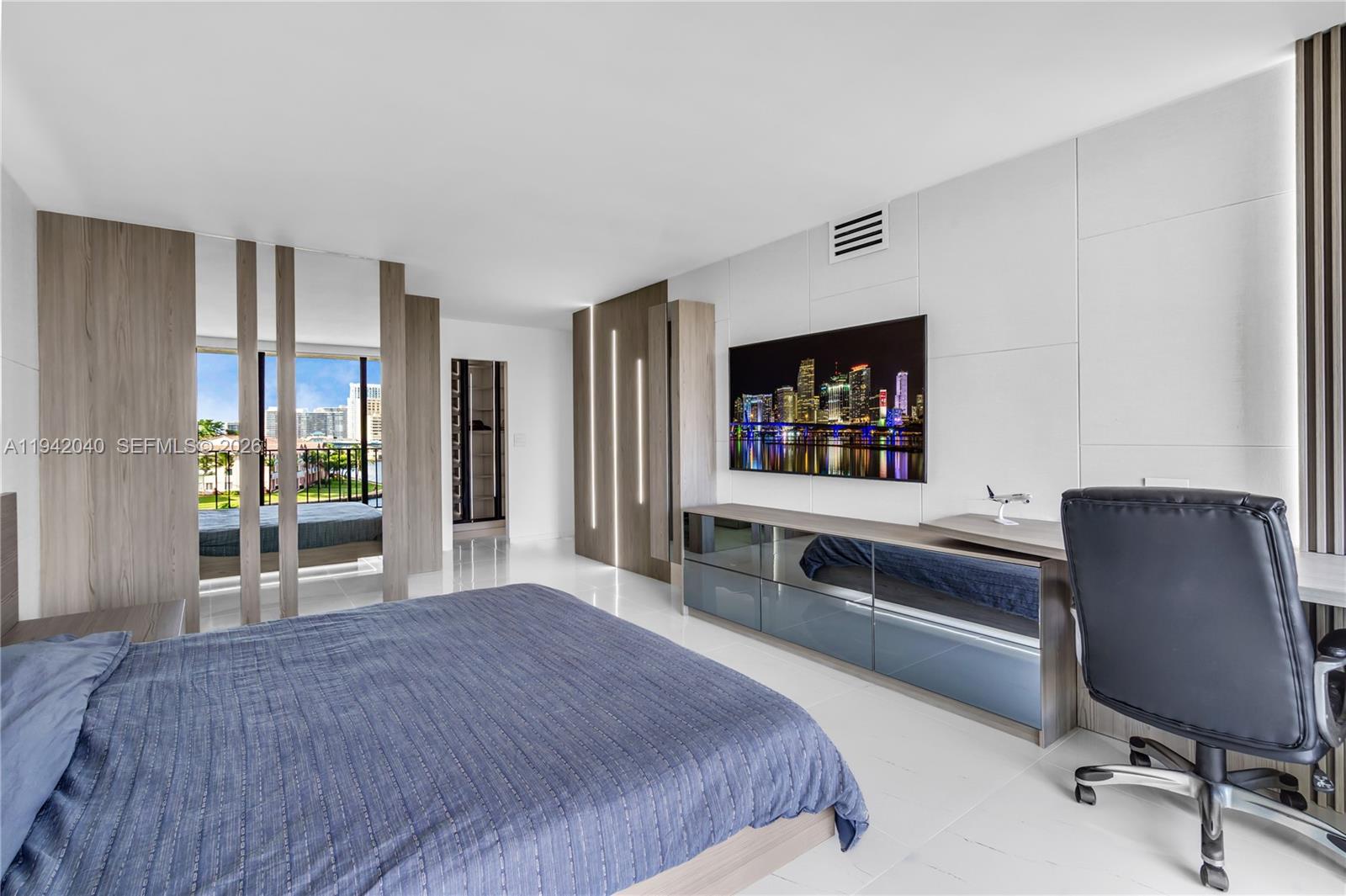 A luxurious condo with a modern European design. This beautifully renovated home features custom cabinetry, an open kitchen with an island, and 32x32 tiles throughout. Enjoy high-end appliances like a Miele built-in oven and coffee maker, Fisher and Paykel refrigerator and dishwasher, and a Scott Cerano cooktop with downdraft ventilation. Recent upgrades include a new AC unit and water heater. Modernized bathrooms boast stylish tiles and built-in medicine cabinets. Experience elegance and convenience in this exquisite residence.