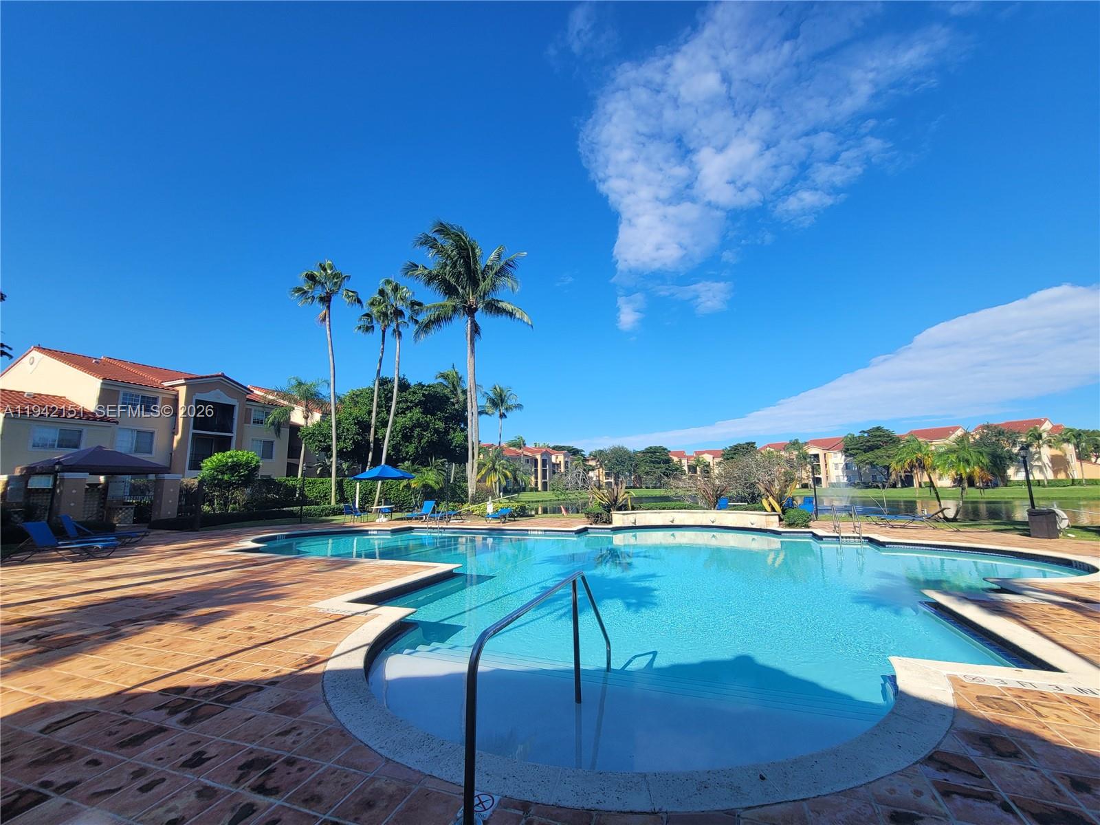 Rarely available 3-bedroom, 2-bathroom condo with lake views, located right in front of the tennis and pickleball courts in a resort-style community. Step inside to find beautiful tile flooring throughout, ceiling fans, & a spacious kitchen with wood cabinetry & granite countertops. A convenient laundry closet includes a full-size washer & dryer. The smart split-bedroom floor plan ensures privacy and comfort, making it perfect as a primary residence or an excellent income-producing investment property. The building is ideally located near the main entrance for easy access, and just minutes away from public transportation, schools, shopping, and major highways. Enjoy the Florida lifestyle with great amenities and unbeatable convenience! NO RENTAL RESTRICTIONS – RENT IMMEDIATELY!