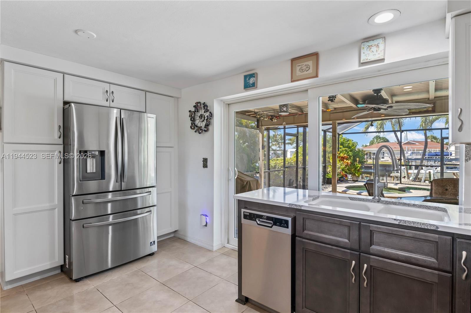 Experience True Florida Waterfront Living! Welcome to this stunning, single-family home, perfectly designed for luxury, comfort, and the ultimate Florida lifestyle. From the moment you step through the impact-resistant double doors, you are greeted by a bright, open living space filled with natural light and a seamless flow between indoor and outdoor areas. The home’s thoughtful layout ensures both entertaining and everyday living are effortless. The gourmet kitchen, completely renovated in 2023, is a chef’s dream. Featuring solid wood cabinets with pull-out drawers, Cambria quartz countertops, and brand-new stainless-steel appliances—including dishwasher, refrigerator, and washer/dryer—it combines style and functionality perfectly. Oversized pocket sliding doors frame serene water views, creating a dramatic connection to the outdoor oasis. Step outside to your private waterfront retreat: a sparkling saltwater pool with spa and child safety barrier, a custom poolside bar, and a new pool cage (2022) makes this space perfect for entertaining friends, family, or simply unwinding in peace. The custom paver driveway, tropical landscaping, and low maintenance zero scaping allow for beauty without the work, ensuring maximum relaxation. Boating enthusiasts will love the 10,000 lb. covered lift, motorhome hookup, and the brand-new dock with captain’s walk and lift canopy (2025)—all providing effortless access to the open water just minutes away.