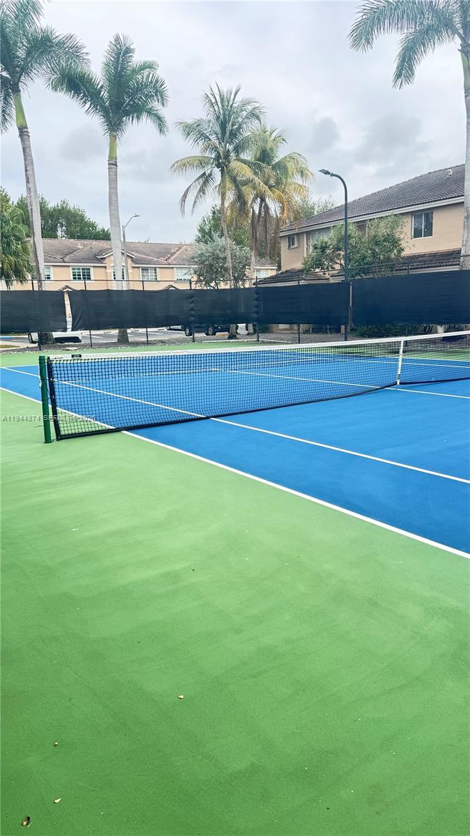 Well-maintained two-level deluxe townhouse offering exceptional corner privacy. This spacious residence features two en-suite bedrooms with full bathrooms and custom walk-in closets. The updated kitchen includes newer cabinetry, all-new appliances, and a new A/C system. Ceramic flooring throughout the first floor and laminate flooring on the second floor. Bright and open living and dining areas are ideal for entertaining. Patio and storage space included, with a washer and dryer conveniently located upstairs. Community amenities include a pool, playground, tennis court, fitness center, jogging and biking paths, security patrol, and ample guest parking. Gated community with easy access to major roads, transportation, Miami International Airport, Dolphin Mall, and A+ schools.