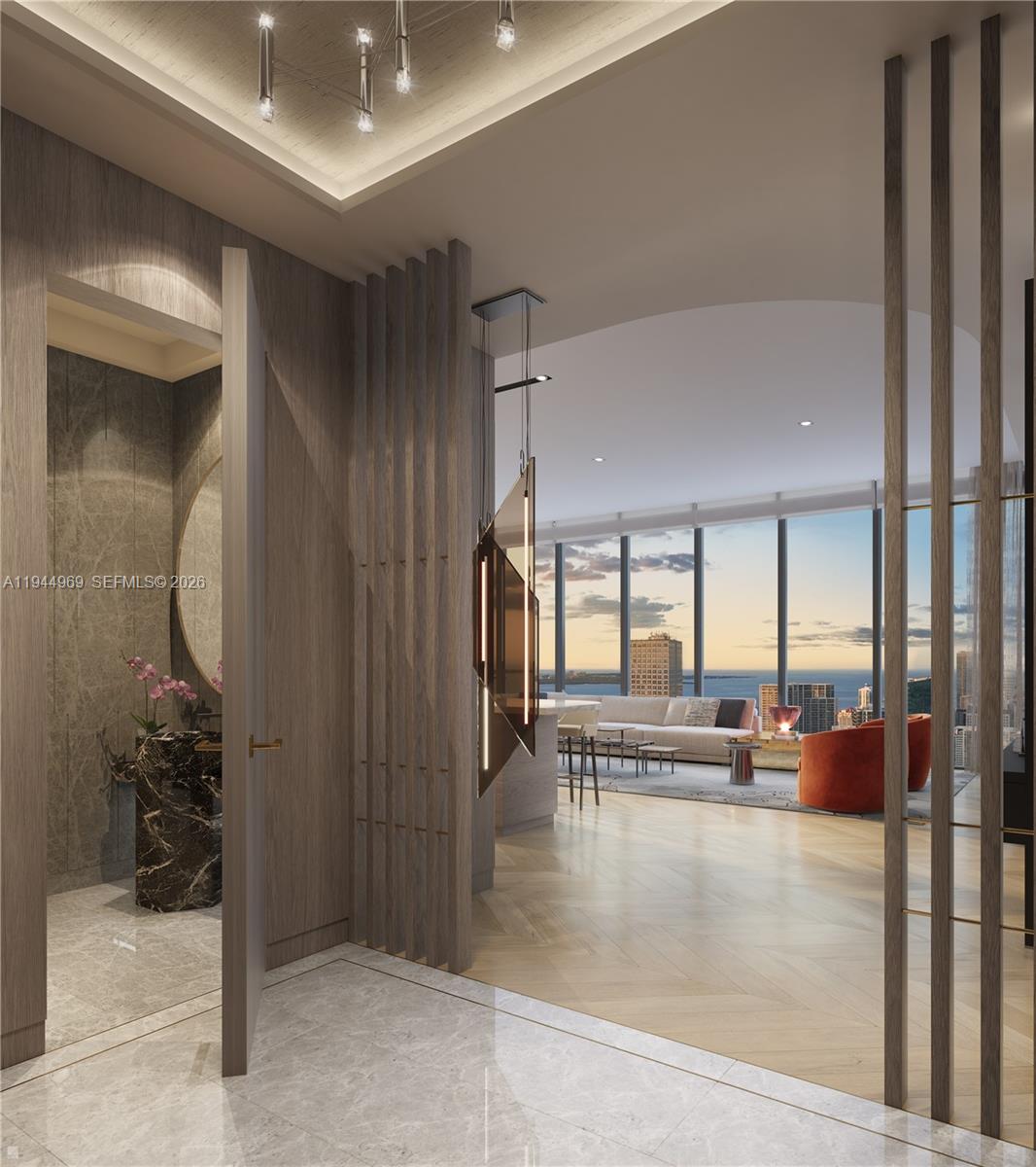 Experience refined luxury living at Waldorf Astoria Residences Miami in this spectacular Residence 01, located on high floors (Levels 60–68). This expansive 4-bedroom, 4.5-bath residence offers 3,256 SF of interior living space plus a 200 SF private balcony, totaling 3,456 SF. Arrive via a private elevator foyer into a grand open-concept living and dining area featuring floor-to-ceiling windows and stunning panoramic views of Biscayne Bay and the Miami skyline. The thoughtfully designed layout includes a spacious primary suite with spa-inspired bath and custom wardrobes, three additional bedrooms with en-suite baths, a powder room, and a dedicated laundry room. Enjoy the legendary Waldorf Astoria lifestyle, including world-class concierge services, luxury amenities, and hotel-style offerings, all in a premier Downtown Miami location near Brickell, Miami Beach, fine dining, and cultural destinations.