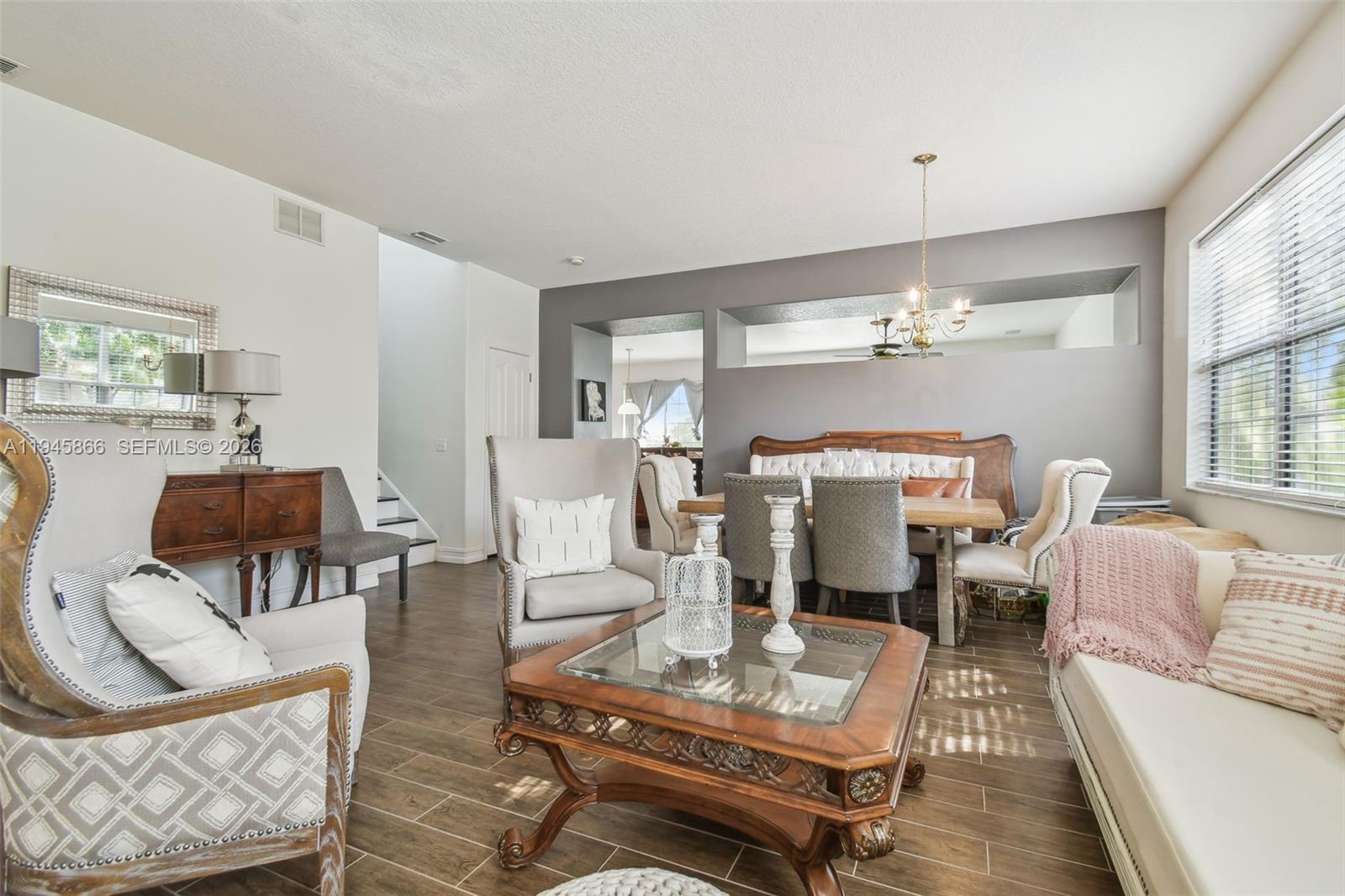 This BEAUTIFUL 4/3, 2 CAR-GARAGE HOME has been appointed with STYLISH UPGRADES and has a SMART FLOOR PLAN. With lots of common areas, this home is great for entertaining or even generational families! Upon entering, you’ll notice the common areas are graced with WOOD-LOOK TILE in the Living Room / Dining Room Combined Area, as well as the Kitchen / Family Room Combined Area. The Kitchen boasts GRANITE COUNTERTOPS, STAINLESS STEEL APPLIANCES, and an EAT-IN DINING AREA. Maybe the best part about the downstairs is that it has a BEDROOM and FULL BATH! Meanwhile, UPSTAIRS not only has 3 BEDROOMS and 2 UPGRADED FULL BATHS, but it has a common LOFT SPACE. bask in the luxury of the SPA-LIKE ENSUITE flaunting a HUGE SHOWER with a GLASS BARN DOOR, CHIC TILE PATTERNS, not one but TWO RAIN SHOWER HEADS with WANDS, a convenient NICHE, and a WINDOW that lets in PLENTY OF SUNSHINE! There’s also a DOUBLE VANITY with VESSEL SINKS and UPGRADED MODERN FIXTURES! The other FULL BATH upstairs echoes the same theme with yet another shower with a GLASS BARN DOOR, CHIC TILE PATTERNS, This VANITY also flexes a VESSEL SINK and UPGRADED MODERN FIXTURES! And if you love convenience, make sure to take note of the UPSTAIRS LAUDRY ROOM! This home has a PRIVATE BACKYARD Home also is fitted with double insulation. This lovely home is in a NO FLOOD ZONE, has NO CDD FEES, and a low monthly HOA that allows for a playground, basketball court, and volleyball court. ROOF 2023. Come see it to believe it!