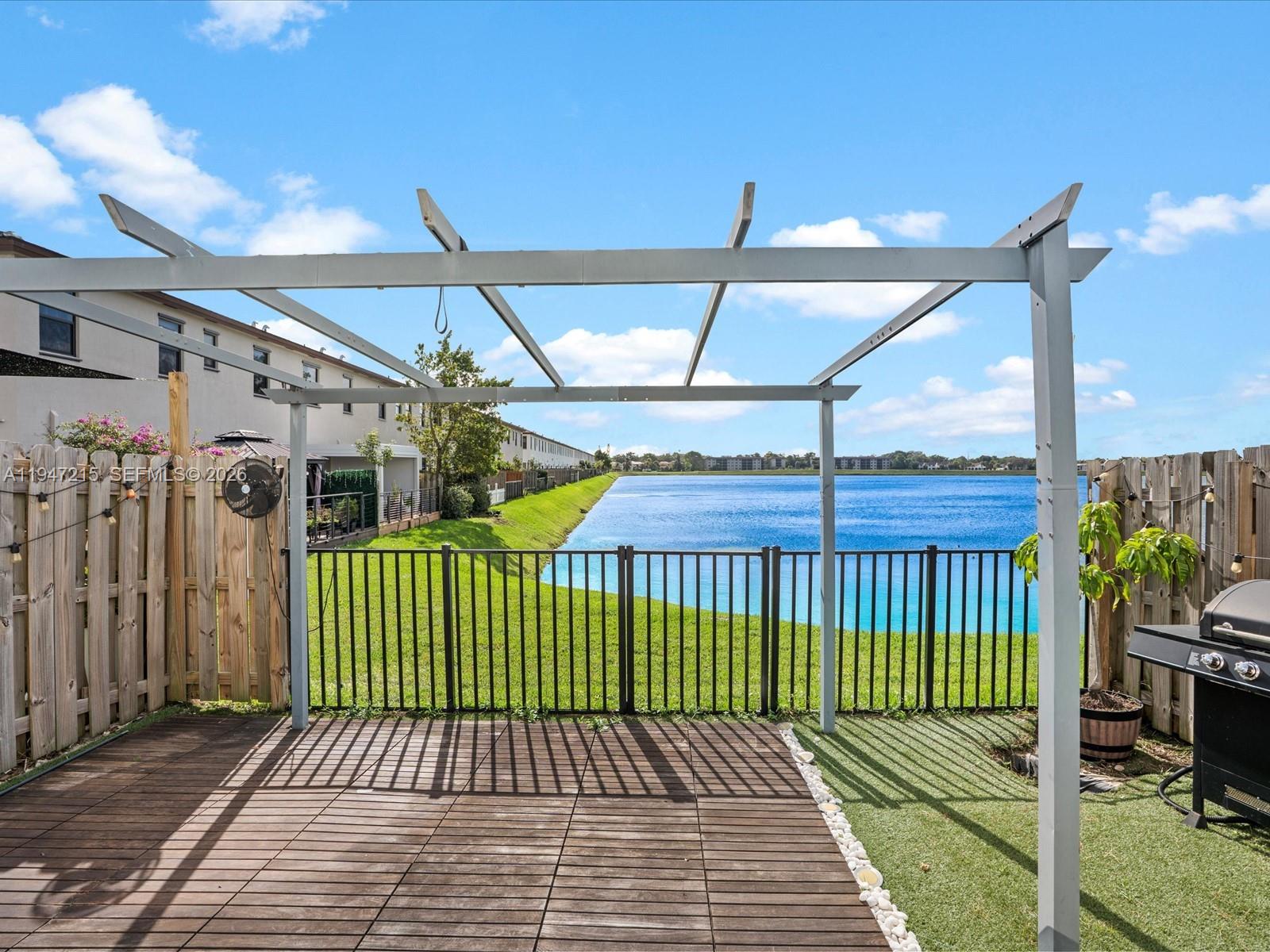 Beautifully upgraded modern home in Paseos Via Ventura, a newly built gated community with resort-style amenities in a prime location. Upgraded interior features include tile flooring on the first floor, vinyl wood flooring on the second floor, updated lighting, quartz countertops, a quartz waterfall island, an electric fireplace, an upgraded washer/dryer, and an electric garage door opener. Private, low-maintenance outdoor space with a direct lake view includes a metal gate, wood planking, turf, pergola, and outdoor fans-ideal for entertaining. Conveniently located less than 1 mile from a grocery store plaza, under 2 miles from I-95, and approximately 3 miles from Aventura Mall, offering easy access to top schools, shopping, dining, and major highways. A rare opportunity to own a move-in-ready home with a lake view, in a prime location. Schedule your private showing today!