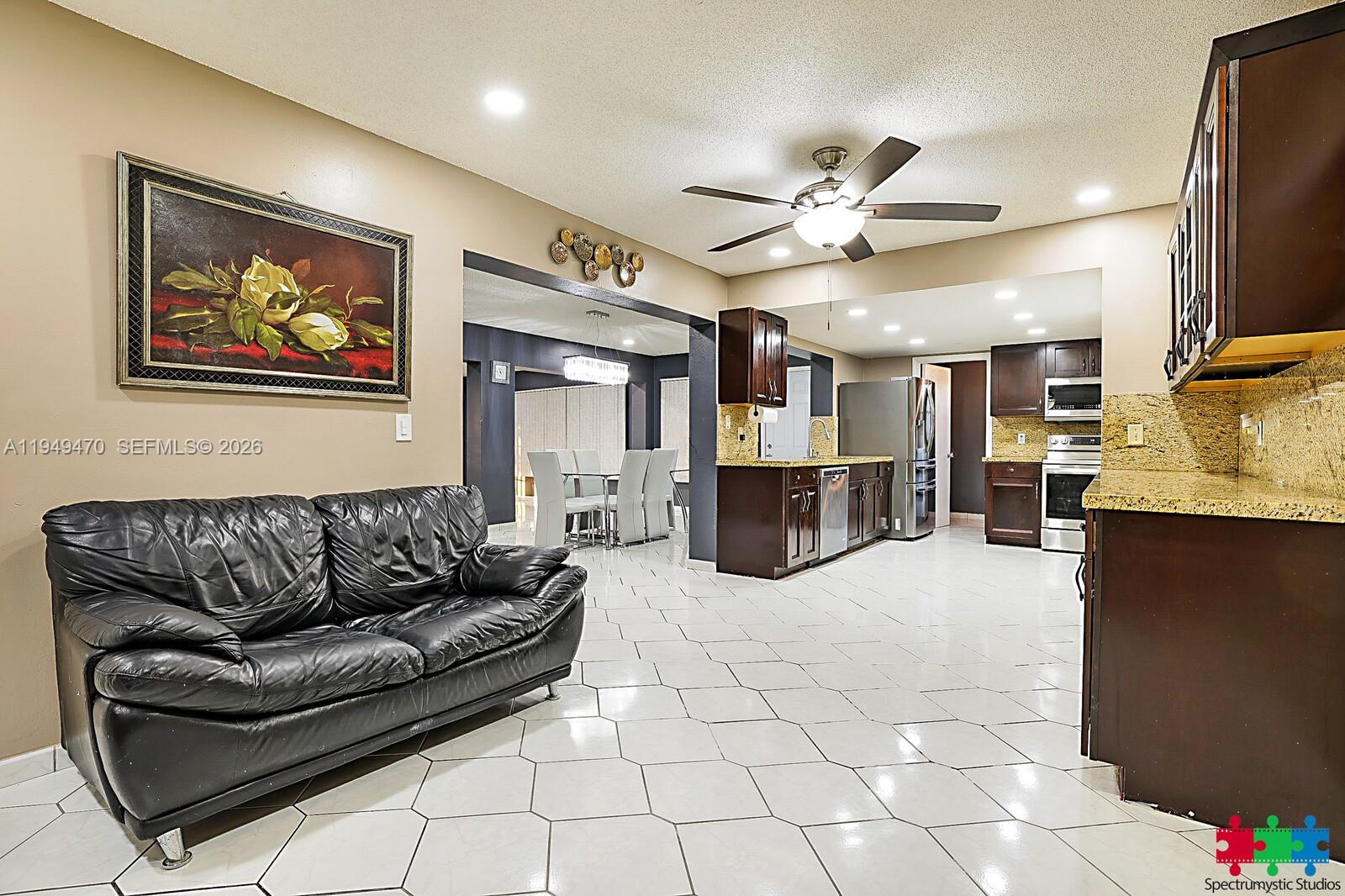 Rare opportunity to own one of the largest homes in this desirable Pembroke Pines neighborhood. This spacious 3-bedroom, 2-bath,one car garage residence offers approximately 2,377 square feet of living space, making it a true standout in the area. The thoughtfully designed open-concept layout features a seamless dining and living area ideal for entertaining, along with an expansive open family room that serves as the heart of the home. The updated kitchen and bathrooms showcase modern finishes, while a newer roof (2014) adds long-term value and peace of mind. With a versatile floor plan offering the potential to convert to up to 5 bedrooms, this home provides exceptional flexibility. Accordion shutters throughout enhance both convenience and storm protection. Enjoy a beautifully sized backyard with no rear neighbors—backing to a serene open field for added privacy and tranquil views. No HOA, offering complete freedom and convenience. Circular driveway with room for multiple cars leads to a 1 car garage.