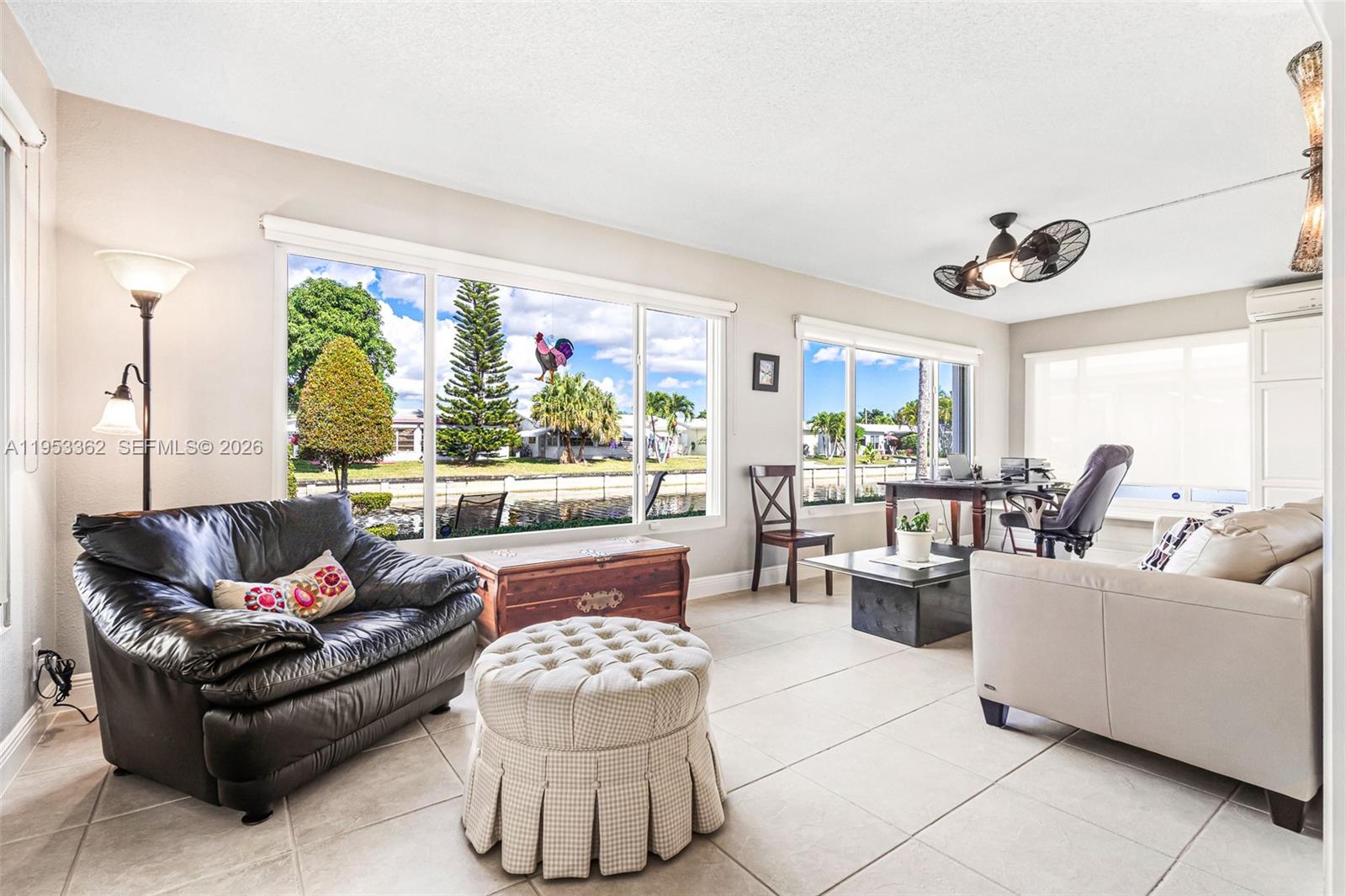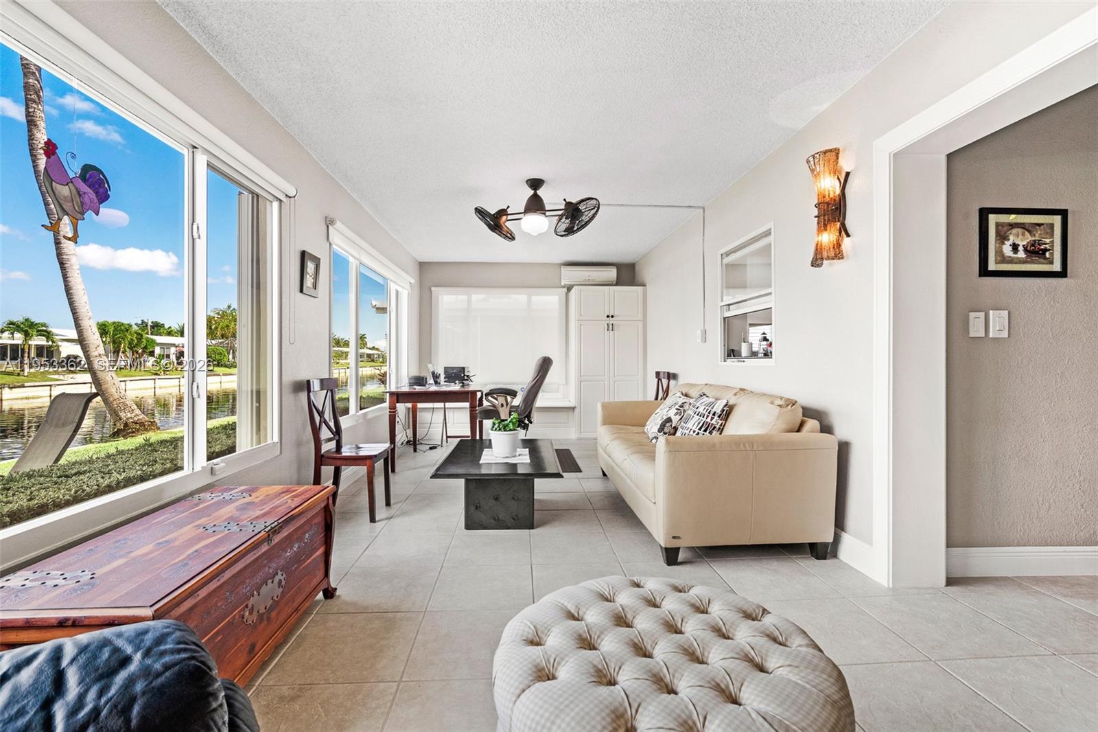 IMPECCABLY FURNISHED 2 BEDS/ 2 BATH home located in the sought-after 55+ community of Mainlands of Tamarac. This home is located on the WATER and surrounded with peaceful views. Paved driveway and immaculate front/backyard. Renovated bright & modern kitchen that is equipped with stainless steel appliances and dishwasher. The kitchen has plenty of pantry storage and two windows that bright a lot of natural light. Kitchen leads into an additional room that stores the washing machines before getting into the utility/converted garage room. Well organized and plenty of space for tools, bikes, beach items, decor, & much more. Water heater was replaced in 2026 and AC in 2022! Home is equipped with hurricane impact windows and the roof replacement was done in 2025. Passing the dining area there is the enclosed florida room section that has been set as a sitting/office area. This room has its own AC and additional built-in storage. You also have the screened-in Florida Room that has outdoor furniture & can lead to the outside BBQ and amazing views overlooking the water. Community offers plenty of amenities such as a community room, pool, activities, shuffleboard, etc!