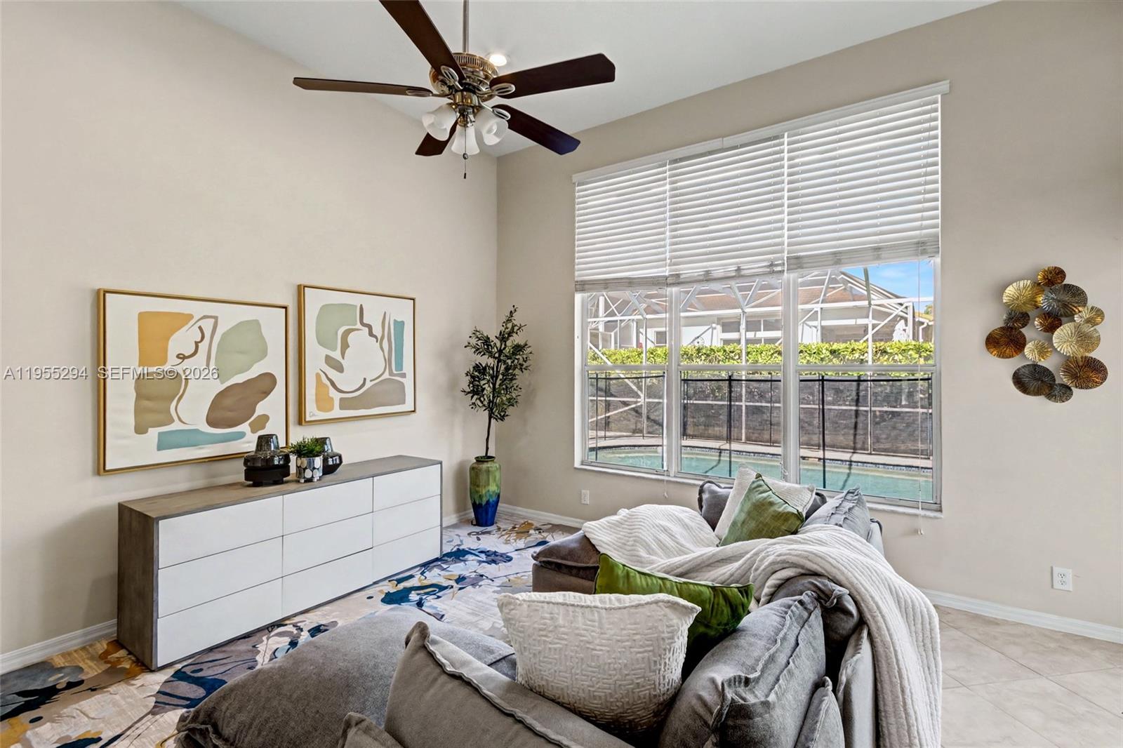 An elegant single-story Mediterranean-style pool home, tastefully remodeled and ideally situated within the prestigious gated golf community of Eagle Trace. The residence features a brand-new roof and new A/C, along with high-volume ceilings, expansive living and family rooms, and formal dining. The light-filled open kitchen offers granite countertops, stainless steel appliances, and a breakfast area. The spacious primary suite serves as a private retreat with walk-in closets, dual vanities, a spa-style soaking tub, separate shower, and private water closet. Well-proportioned guest bedrooms provide comfort and privacy for family and visitors alike. Designed for effortless indoor-outdoor living, the home opens to a screened-in patio, sparkling pool, and covered entertaining area—ideal for year-round South Florida living. Additional highlights include a dedicated laundry room and a two-car garage. Residents of Eagle Trace enjoy 24-hour gated security, golf, tennis, playgrounds, and resort-style amenities.