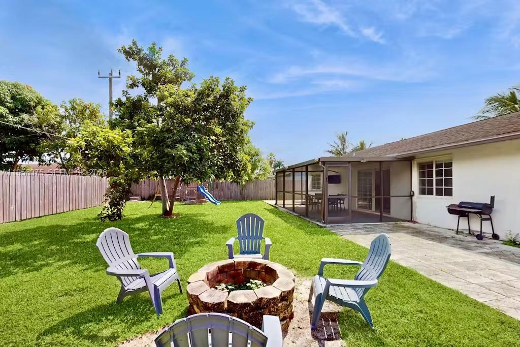 Discover this charming 3-bedroom, 2-bathroom single-family home offering 1,197 square feet of comfortable living space in desirable NW Lauderhill. Nestled on a quiet cul-de-sac street with no through traffic, this residence provides the perfect blend of privacy and convenience. Step inside to find a bright, open floor plan enhanced by soaring vaulted ceilings and abundant natural light streaming through oversized windows. The freshly painted interior in neutral tones creates a move-in ready canvas for your personal style. The inviting kitchen features warm wood cabinetry and modern stainless steel appliances including refrigerator, dishwasher, microwave, and self-cleaning oven. The thoughtful layout includes a main-level master suite and stacked secondary bedrooms. Tile flooring flows through the main living areas while vinyl flooring complements the additional bedrooms. Enjoy seamless indoor-outdoor living through double-pane patio doors that open onto a screened lanai overlooking the expansive, fully fenced backyard complete with a mature fruit-bearing avocado tree, firepit, and play area perfect for entertaining. Additional highlights include one car garage, washer/dryer, and an entrance foyer. Ideally located between University Drive and Pine Island Road, you're minutes from Sawgrass Mills Mall, diverse dining, and entertainment. Easy access to major highways makes commuting a breeze. Don't miss this opportunity to call this welcoming home yours!