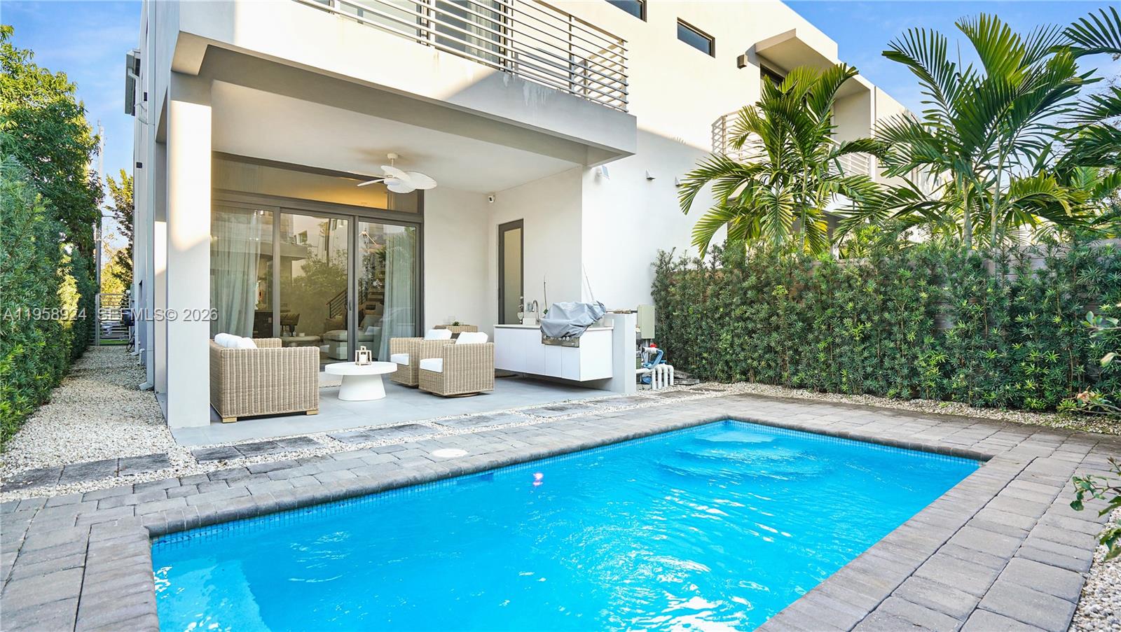 Experience the pinnacle of luxury living in this stunning townhouse built in 2022, perfectly positioned in the heart of Coconut Grove. This modern four-bed, four-bath residence offers unmatched convenience, with Coral Gables, Downtown Miami, Brickell, and the vibrant Coconut Grove just minutes away. Enjoy no monthly maintenance fees without any association in control. Built-in summer kitchen with outdoor BBQ grill looking over the swimming pool. Open modern kitchen, top-of-the line finishes, high ceilings, all impact windows and stainless steel appliances. 2429 SQ FT under laundry room and a garage. Walkable streets, award-winning Michelin-starred restaurants, charming local cafés, and a lively neighborhood atmosphere. Enjoy easy access to the nearby bay, marinas, and lush parks, offering the ideal balance of urban living and natural beauty.