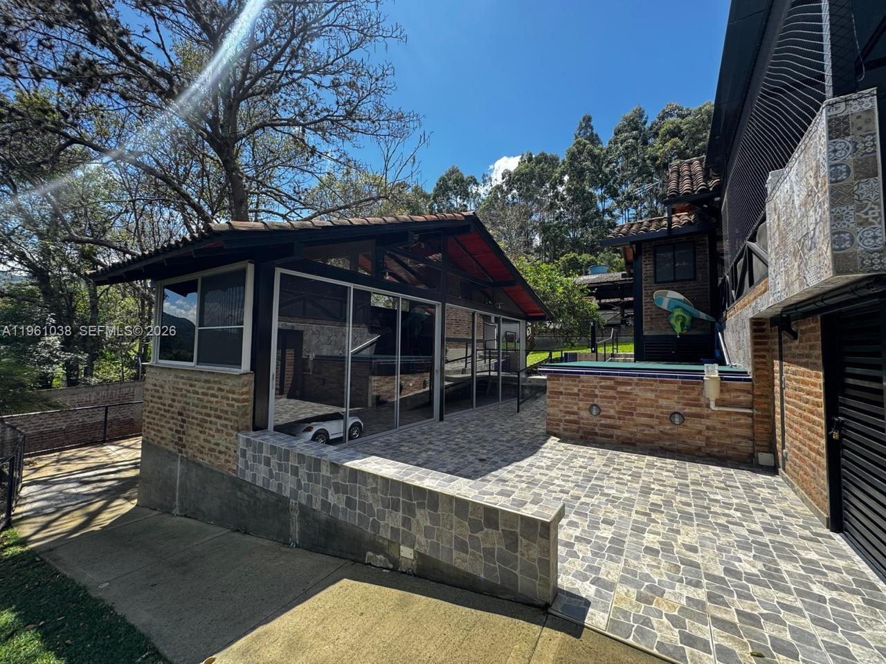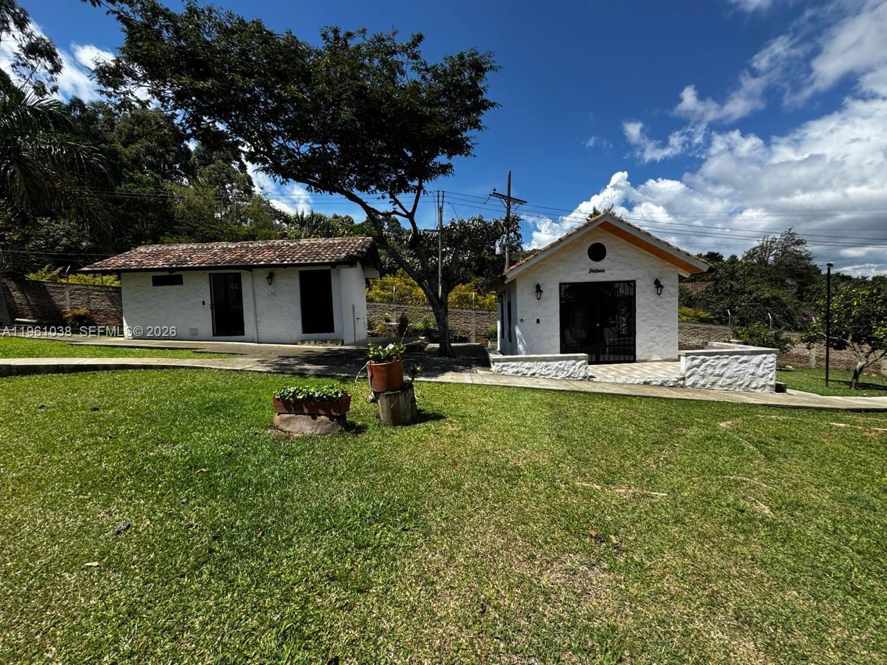 COUNTRY HOUSE FOR SALE – Dapa Sector, Cali – Colombia A refuge of peace and nature. Ideally located 40 meters from the main road, just 10 minutes from the Dapa Crossroads. Single-level home featuring three spacious bedrooms, each with a private bathroom and walk-in closet, plus one service bedroom with its own bathroom. Additional guest house (two bedrooms, bathroom, kitchen, living room, and covered patio). One guest bathroom. Entertainment room with panoramic views from the terrace. Living and dining room with fireplace, open-concept kitchen overlooking the garden, ceilings over 5 meters high, and mezzanine. Outdoor areas: Heated swimming pool, outdoor kitchen and dining area, barbecue area, illuminated gardens, fruit and ornamental trees. Space for a vegetable garden. Walking trail. Outdoor terrace with panoramic roof. Security: Closed-circuit television system, brick perimeter wall, and electric fence. Utilities: Potable and non-potable water storage tanks with pressure pump system and backup power generator. Parking: 9 vehicles