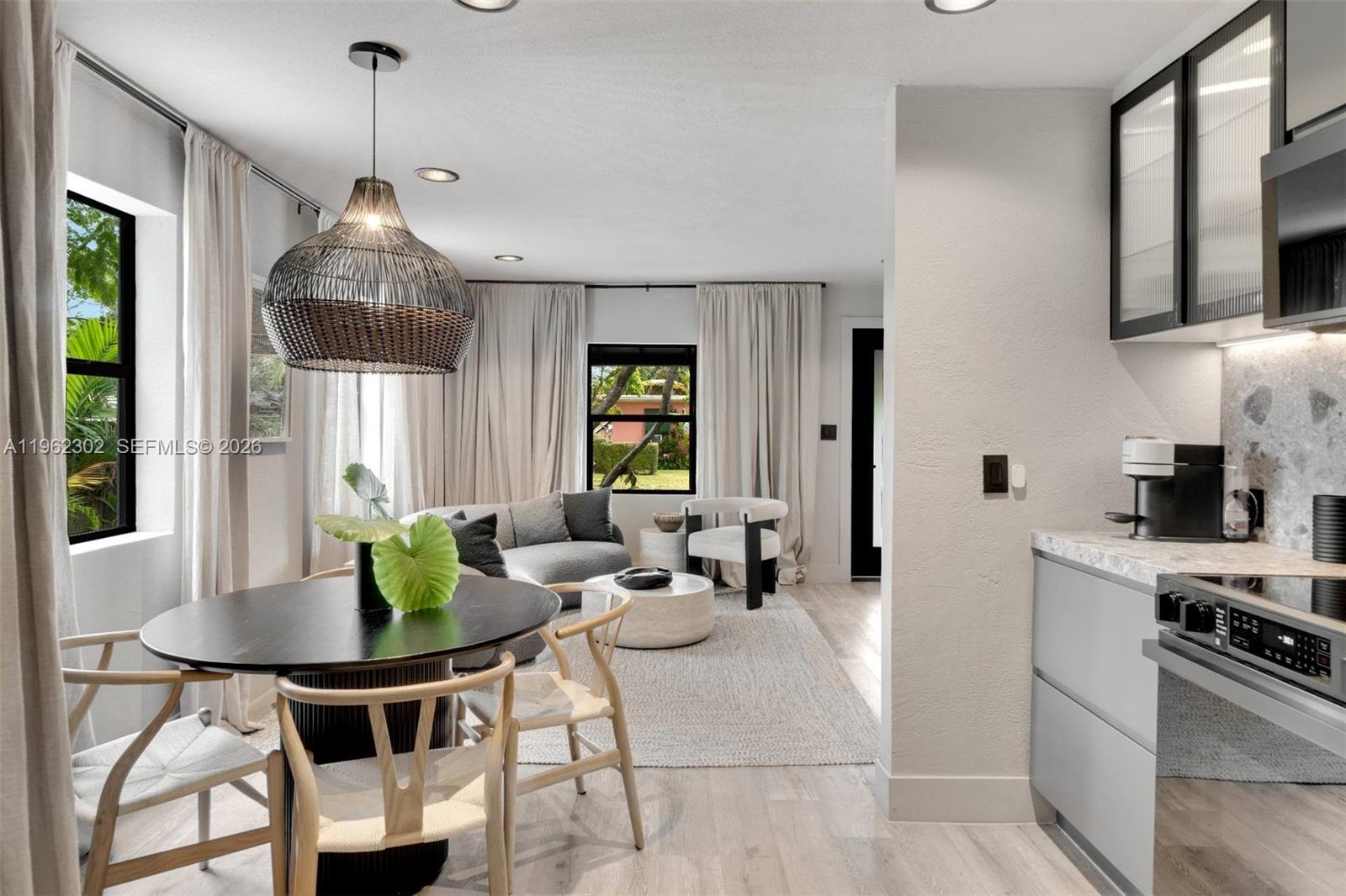 This circa 1948 residence has been thoughtfully transformed into a modern-day oasis, blending timeless design with inviting, warm vibes. Live in style in this chic, designer-renovated, turn-key one-story single-family home, complete with a newer roof and beautifully curated finishes throughout. The home features a sleek, modern kitchen, stylishly updated bathrooms, custom-built-ins, and lush new tropical landscaping that creates a private, retreat-like setting. Step outside to enjoy a relaxing jacuzzi, with ample room to add a swimming pool and further enhance the outdoor living experience. Ideally located just steps from the park and minutes to the Village center, this home places Coconut Grove’s best dining, shopping, and cultural attractions right at your doorstep. Move right in—offered furnished for ultimate convenience. Perfect as a sophisticated pied-à-terre or an ideal home for a starting family seeking one of Miami’s most walkable and desirable neighborhoods.
