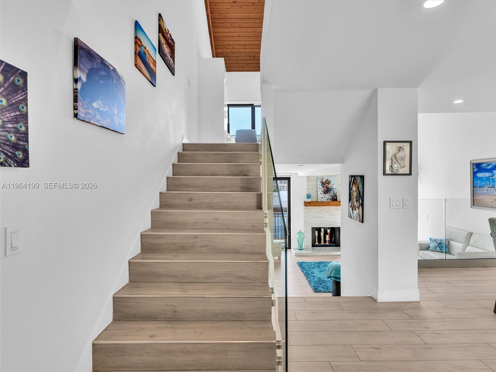 Less than five minutes from dock to ocean! This boater’s paradise is nestled inside a private, gated club community in the heart of Port Everglades. With your own 55-foot deeded dock just steps from your back door, this home offers the ultimate boating lifestyle. This beautifully renovated 2-bedroom + loft, 2.5-bath townhome has been completely updated with exceptional attention to detail. The main living area features soaring 22-ft ceilings, a stately fireplace, and serene water views. The chef’s kitchen offers custom cabinetry, quartzite countertops, glass backsplash, stainless steel appliances, and a wine cooler, overlooking a spacious dining area ideal for entertaining. The primary suite includes a built-out oversized closet and spa-inspired bath with dual vanities, rain shower, and soaking tub. All bathrooms have been fully renovated with refined finishes. The middle level hosts the main living and kitchen areas, the top level offers a private primary suite and loft, and the lower-level bedroom opens to a patio with direct dock access. Additional features include all new hurricane impact windows and doors. Enjoy marina views from three balcony levels, combining elegant, private waterfront living with effortless boating access.