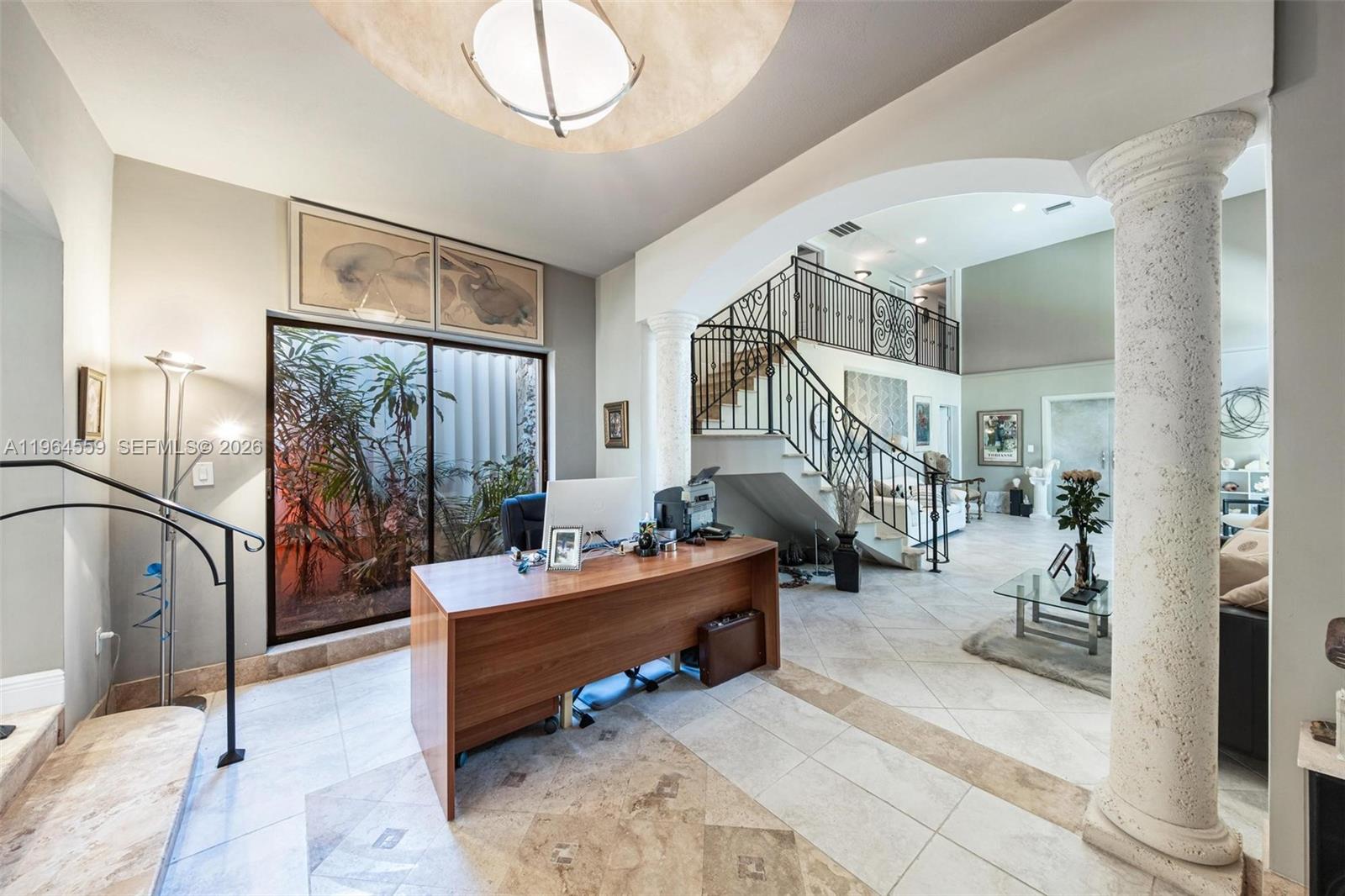 Timeless Mediterranean Charm in South Miami; A Rare Opportunity on a Sprawling Corner Lot. Nestled in the heart of South Miami, this stunning Mediterranean-style residence offers a perfect blend of historic soul and modern meticulousness. Situated on an expansive corner lot of over 1/3 acre, the property provides a sense of space and privacy that is increasingly rare in today's market. A Legacy of Care: This isn't just a house; it’s a home that has been cherished by the same family since the 1970s. Their pride of ownership is evident in every corner, from the pristine maintenance of the original architectural details to the thoughtful, high-end updates integrated over the decades. Key Features & Interior Highlights: Voluminous Great Room: The heart of the home is a dramatic, two-story Great Room. With soaring ceilings and an abundance of natural light, it serves as a grand centerpiece for both daily living and formal gatherings. Seamless Aesthetic: Elegant tiling runs throughout the entire residence, offering a clean, cool, and low-maintenance flooring solution perfectly suited for the Florida climate. Indoor-Outdoor Flow: Classic French doors transition the interior space to the outdoors, inviting the garden views inside.