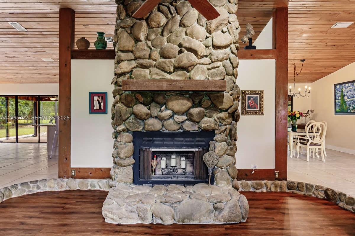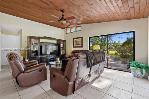 Custom built home on 5.34 acres with resort-like amenities. Stable with 3–12 x12’ stalls that open to large paddock plus 3 rooms for tack/feed, office and plumbed for apt. Large fenced pastures with auto-watering. Large salt-water pool, lighted tennis court, two fresh water ponds and concrete trailer/RV pad with electric. Custom built home with vaulted, Cedar wood ceilings, living room with River Stone fireplace, updated kitchen with sky lights, SS appliances and wine cooler, dining room, family room, office/den and huge screened patio perfect for entertaining. New Spanish barrel tile roof– 2019. Newly painted inside and out 2021. New HVAC system 2024. 3 New breaker boxes 2023. New water softening system 2022 and more. Secure gated entrance with lighted circular driveway and majestic fountain centerpiece