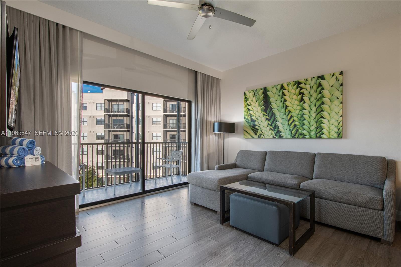 Welcome to the 4-Star Grove Resort & Spa Orlando! This high floor, corner unit offers a spacious split bedroom layout w/1,434 SF of living area. This model features an oversized Primary Suite with separate corner sitting area and the 2nd bedroom features 2 queen size beds. This condo sleeps 8! Other features include a modern interior with solid wood cabinets, solid surface countertops in the kitchen & baths, stainless steel appliances, in-unit laundry room, and all furniture & furnishings are included and ready for your turn-key vacation resort. The resort features outstanding amenities including on-site restaurants, spa, fitness center, arcade game room, multiple resort style pools, access to private Lake Austin, FREE SHUTTLES TO DISNEY PARKS and the on-site SURFARI WATER PARK complete with lazy river, pool-side restaurant and bar, and a FLOWRIDER® double surf simulator. This is a Walt Disney World Good Neighbor® Hotel and less than 5 miles from the world famous Walt Disney World® Resort and Theme Parks. Also, just 3.9 miles to the new Flamingo Crossings Town Center with 40+ shops and restaurants. This amazing condo-hotel unit also offers the convenience of an in-house, on-site hotel rental program which provides rental income when not in personal use and features a VIP Check-In for condo owners. ALL UTILITIES, CABLE TV, AND INTERNET INCLUDED IN MONTHLY MAINTENANCE!