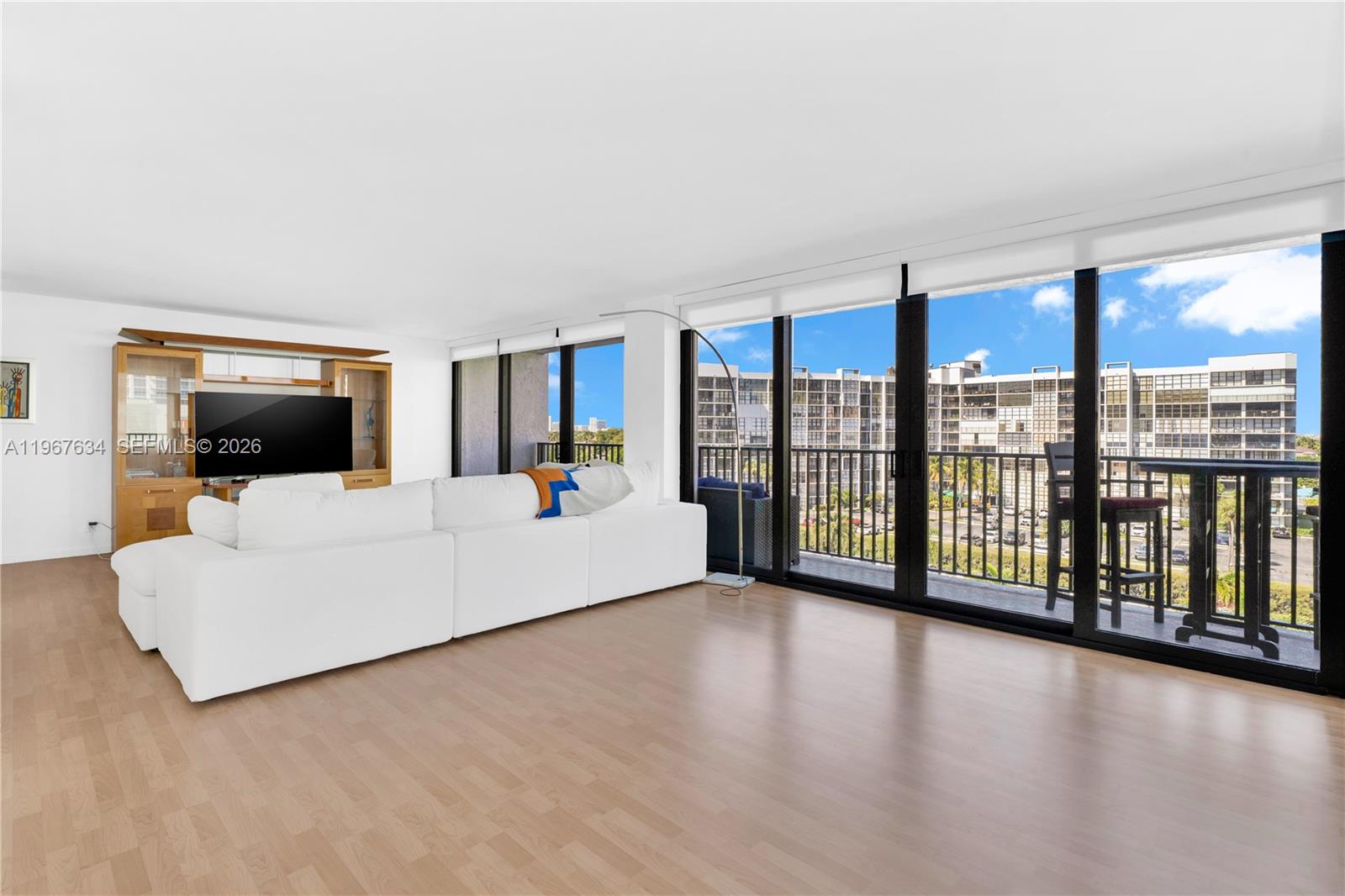 Welcome to Towers of Oceanview in beautiful Hallandale Beach! This spacious 2-bedroom, 2-bath corner condo offers over 1,400 sq ft of bright, open living space with stunning water views. Floor-to-ceiling windows and all new impact windows and doors flood the home with natural light while providing peace of mind and energy efficiency. Enjoy breathtaking views from your expansive wraparound balcony — perfect for morning coffee, sunset cocktails, or simply relaxing with the coastal breeze. The desirable corner layout enhances privacy and showcases water views from multiple rooms. ample closet space, and comfortable living areas ideal for both everyday living and entertaining. An in-unit washer and dryer add convenience. Located just minutes from shopping, dining, and the beach. Whether you're seeking a primary residence, seasonal getaway, or investment opportunity, this light-filled waterfront condo is a must-see!