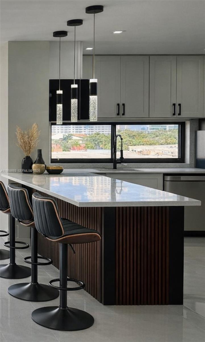 Luxurious fully remodeled apartment, with exquisite design and high-quality materials. Located just two blocks from the beach, it offers a spectacular view of the Sunny Isles Beach skyline and part of the ocean. - 32" x 32" porcelain tile floor with a modern and elegant design - LED-lit ceilings that create a cozy and sophisticated atmosphere - New cabinets and Quartz Countertop with panel decorations that add a touch of luxury - Bathrooms with imported Spanish Tile, modern bathroom fixtures, Toilet and vanities with lighted mirrors that create a spa-like ambiance - Very fine and elegant doors and closets that add a touch of sophistication - Remote-controlled roller shades - motorized - Spectacular view of the Sunny Isles Beach skyline and the ocean between the towers or skyscrapers that border the coast.