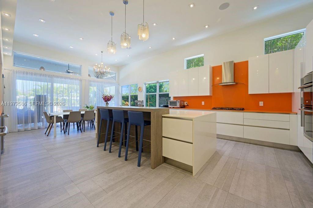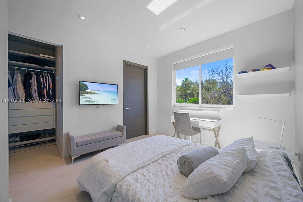 Located in the prestigious Presidential Estates, this stunning 5-bedroom, 4.5-bath residence has been completely renovated with the finest finishes and impeccable attention to detail. The home features a spectacular Miacucina gourmet kitchen, thoughtfully designed for both everyday living and elegant entertaining. Italian design elements elevate the interior, including custom closets, spa-inspired bathrooms, and sleek interior doors that create a cohesive, modern aesthetic throughout. Step outside to your private resort-style oasis. Enjoy a heated pool with a cascading waterfall and wet deck, perfect for relaxing or entertaining. The outdoor space is fully equipped with a built-in barbecue, refrigerator, and wet bar, making it ideal for gatherings year-round. A custom-built sound system seamlessly integrates throughout the interior and extends to the patio and pool area, delivering a premium audio experience inside and out. This exceptional property blends luxury, comfort, and sophisticated design in one of the area’s most desirable communities. Master Bedroom in ground floor.