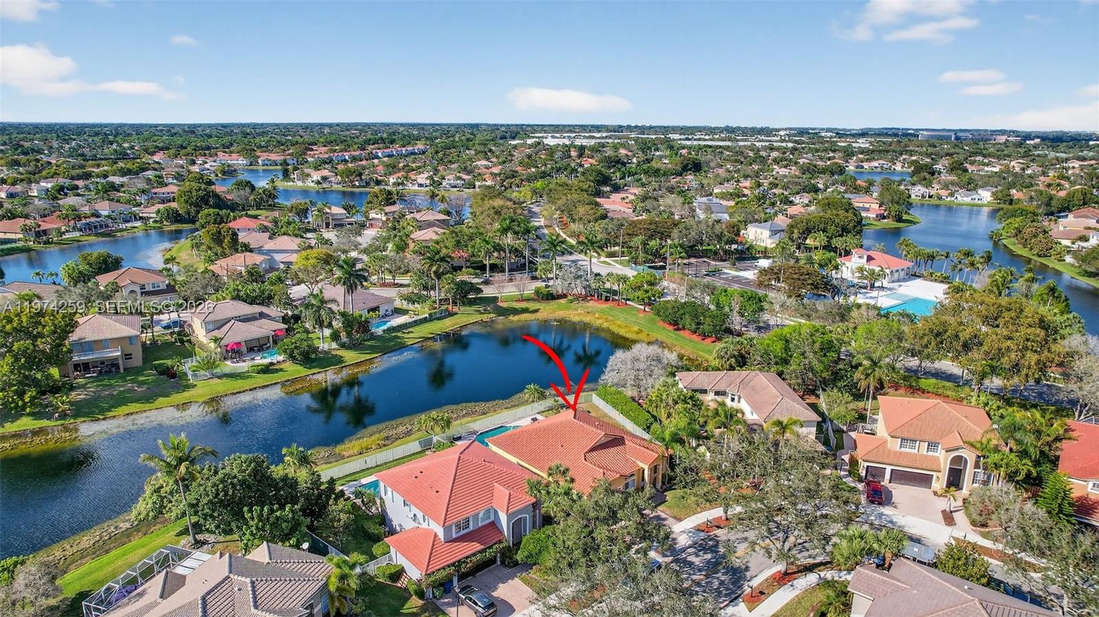 Beautiful lakefront Move-In Ready pool home in Emerald Estates! Totally updated 4-bedroom, 2-bathroom one-story home in the gated community. Fully renovated custom kitchen cabinets and new stainless steel appliances, impact doors and accordion shutters, porcelain tile, and a spacious open-concept layout with formal living, dining, and family rooms. Spacious master suite with custom walk-in closets. Enjoy 24/7 guard-gated security, a pool, a gym, & a playground. Located in an A+ rated school district & walking distance to shops and restaurants, a perfect family home in a prime location!