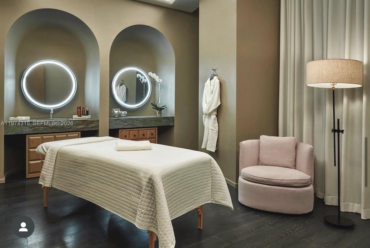 Experience elevated modern luxury in this beautifully redesigned 1 Bedroom + Den, 2 Full Bathroom residence at SLS Lux in the heart of Brickell. Fully upgraded with a sophisticated contemporary aesthetic, this move-in-ready unit features wood-look flooring throughout, custom architectural wall paneling, designer recessed lighting, and an open-concept layout that blends elegance and functionality. The statement kitchen showcases premium appliances, sleek cabinetry, a spacious island ideal for entertaining, and a striking black hexagon backsplash. The residence is equipped with motorized blackout shade for added comfort and privacy. The primary suite offers direct balcony access, a spa-inspired bathroom, and a fully customized walk-in closet, while the den provides flexible space for a home office or guest area. Enjoy a private terrace with impressive Brickell skyline and city views. SLS Lux delivers world-class amenities including rooftop pool, 45th-floor sky lounge, fitness center, tennis court, concierge, valet, hotel-style pool deck, and on-site dining. Designer finished. Prime Brickell location.
