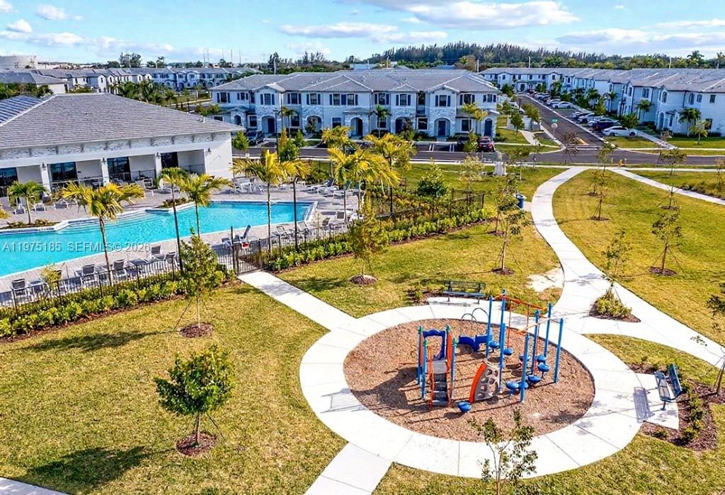 A home configured to give you options. Home has 2 master suites upstairs and bedroom and full bath downstairs. Good for MULTI-GENERATION use, buy with a FRIEND OR ROOMMATE or for YOURSELF. Extras You’ll Love: A washer and dryer are included, smart home wired, 2 assigned parking spots right in front of the unit, gated community with a clubhouse, fitness, pool and kid-friendly play areas and 2 huge shopping centers down the street. The first floor features a fully tiled space with an open layout, combining the family room, dining area, and kitchen with stainless steel appliances.