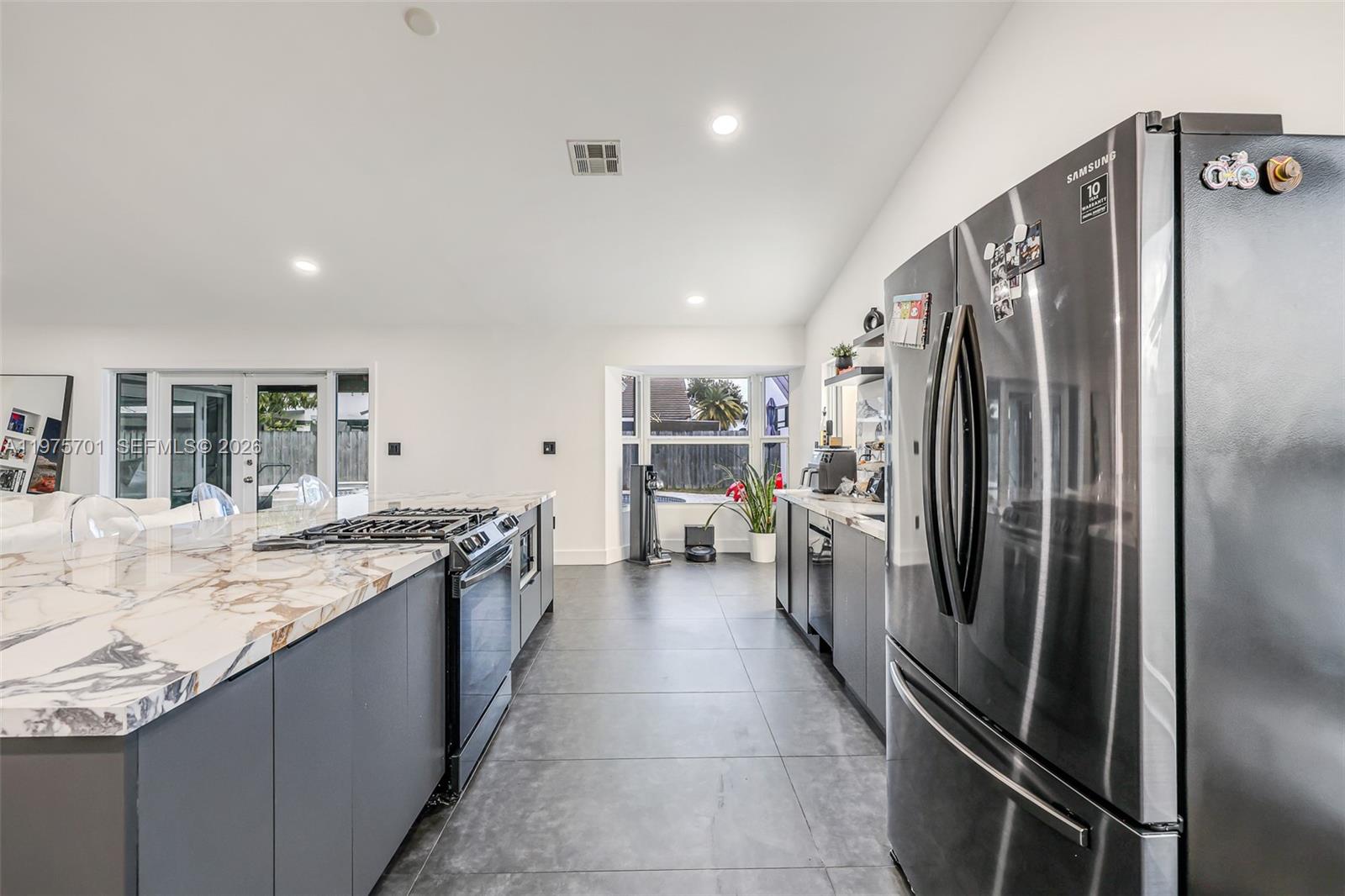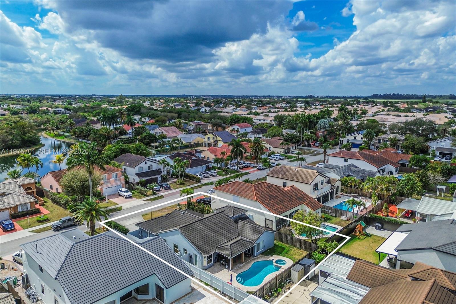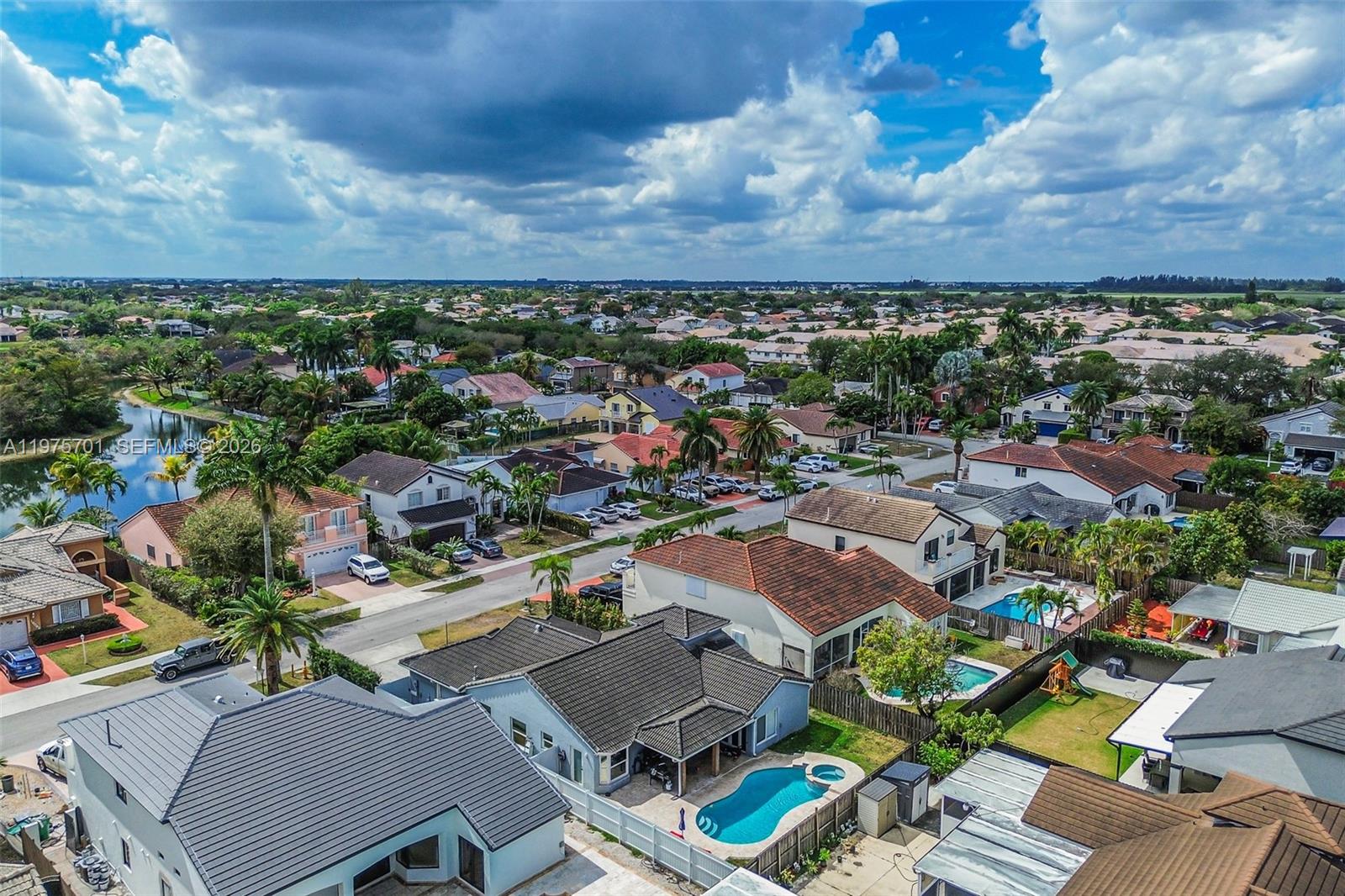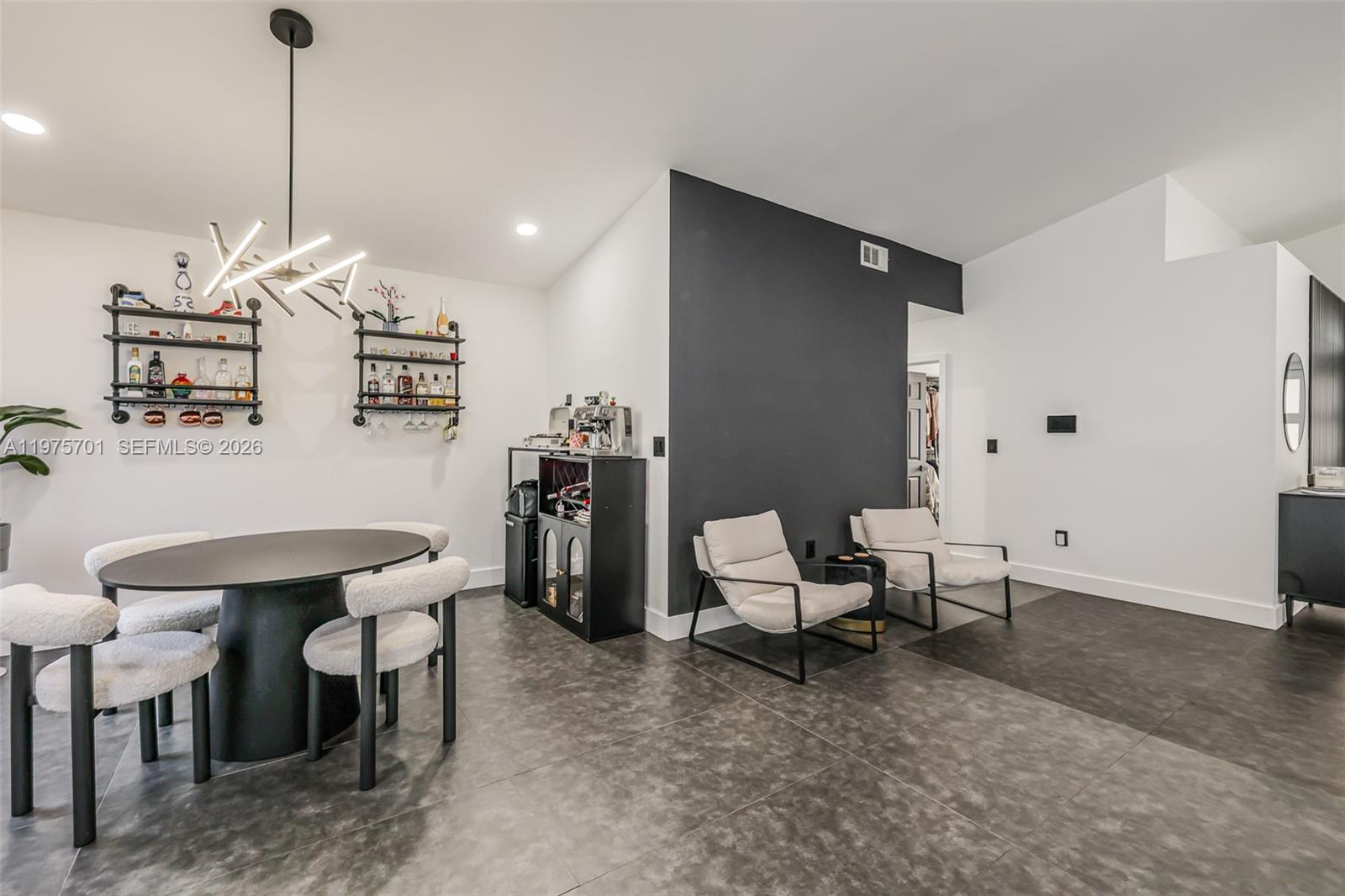 Fully remodeled with sleek, modern finishes, this home centers around a 12-foot kitchen island perfect for entertaining. The main living area includes a custom-built entertainment wall with fireplace and mounted TV - both included in the sale. Enjoy seamless indoor-outdoor living with a private pool, complemented by hurricane impact windows throughout. Ideally located in Lago Mar, the heart of West Kendall.